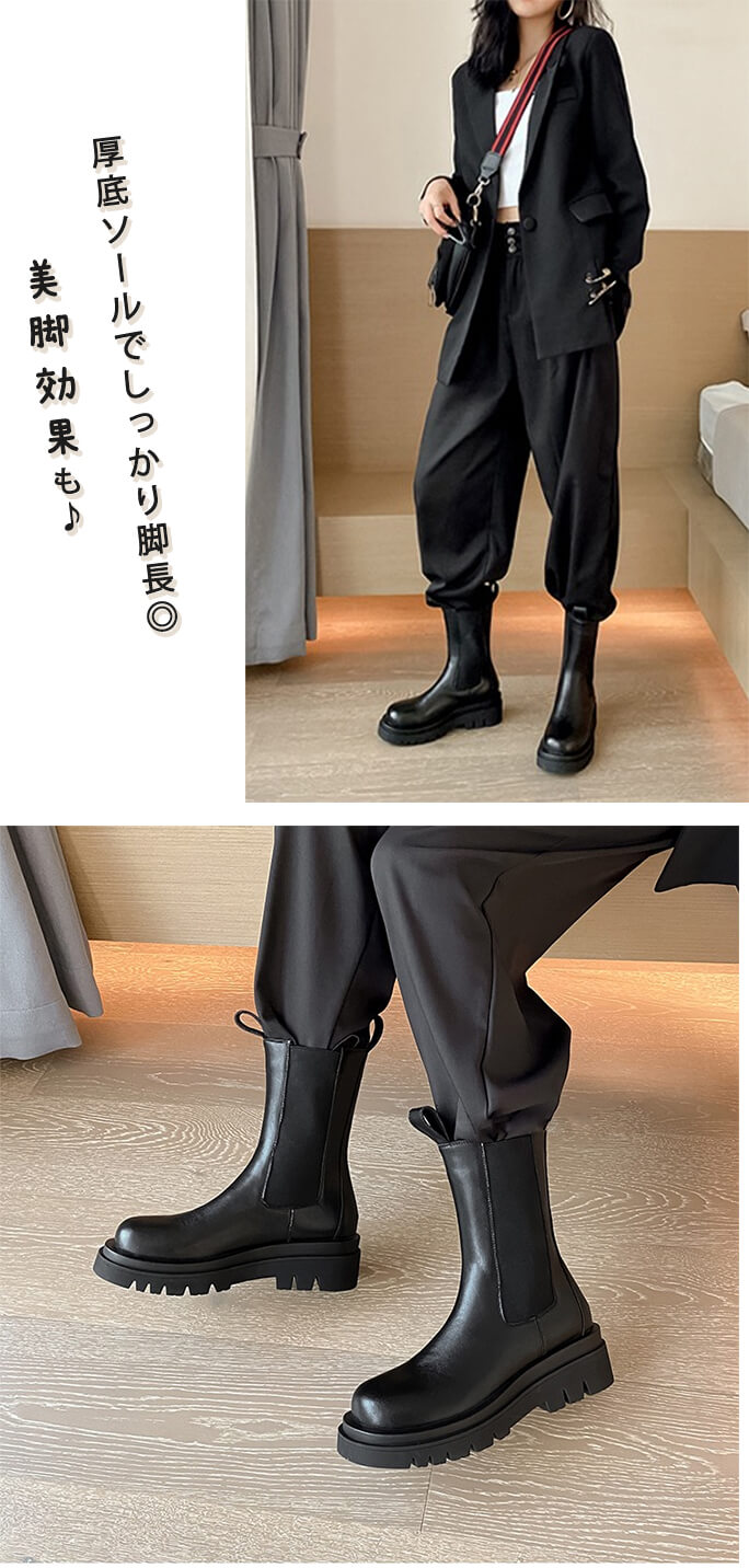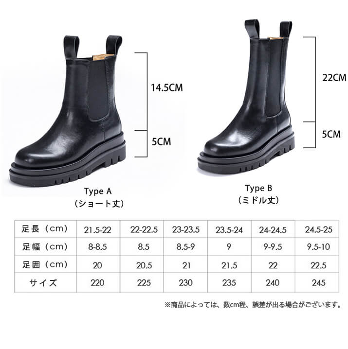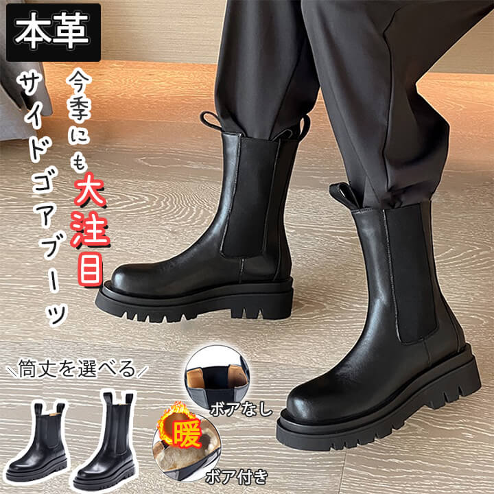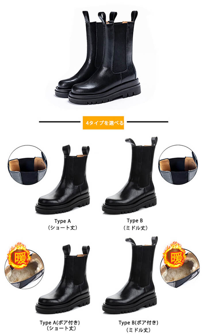 1A12 本革ブーツ チェルシーブーツ 靴 人気 235 240 245 250 ショート丈 ミドル丈 ショート丈(ボア付き) ミドル丈(ボア付き)