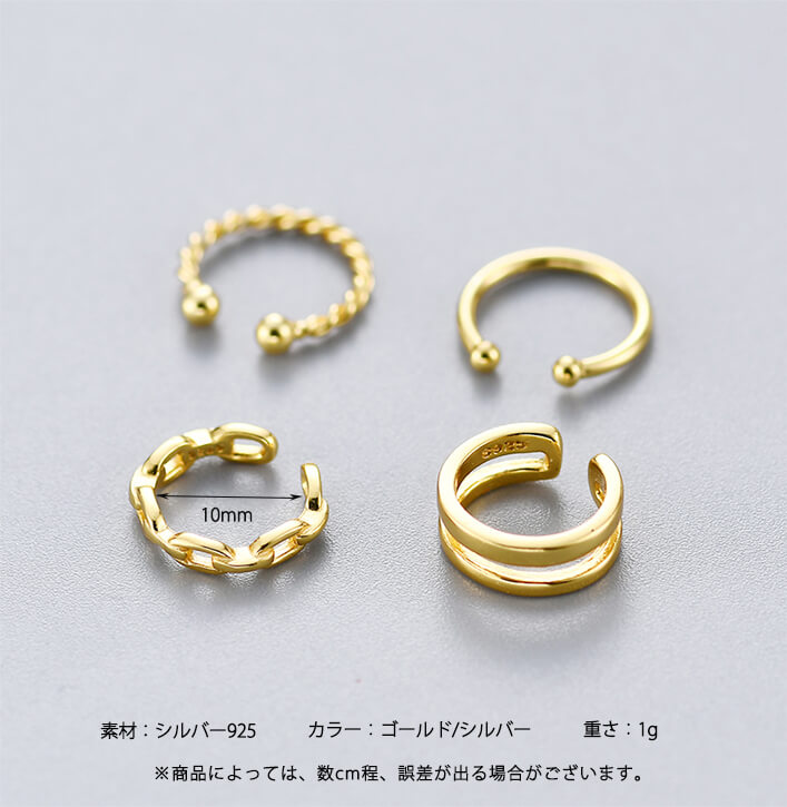 E-104タイプイヤーカフ 男女兼用 Type A(ゴールド) Type A(シルバー) Type B(ゴールド) Type B(シルバー) Type C(ゴールド) Type C(シルバー) Type D(ゴールド) Type D(シルバー)