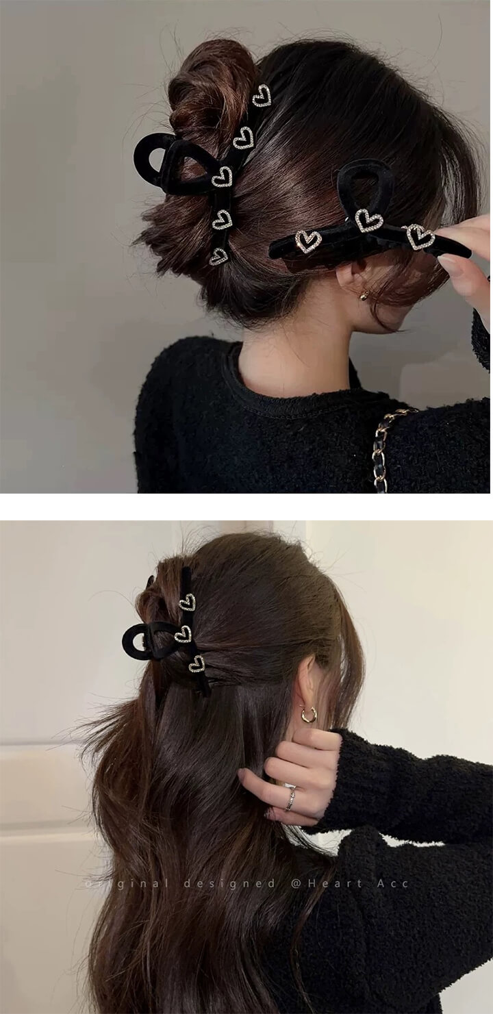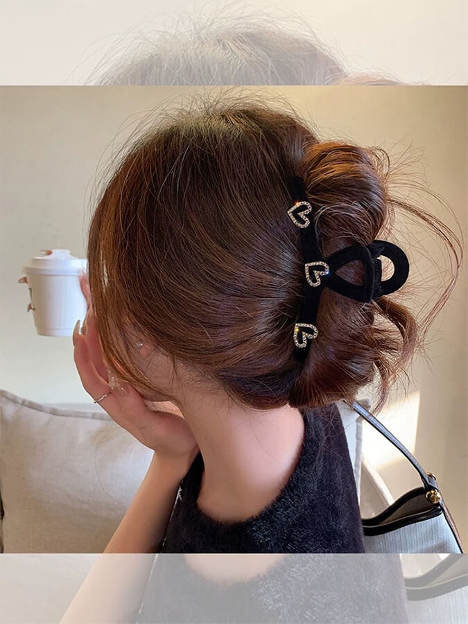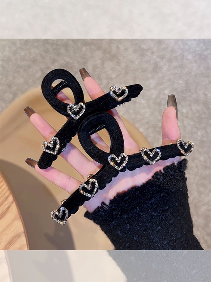 RU-5 ヘアクリップ ベロアヘアクリ ジュエリー アクセサリー 特集 3つハート 5つハート 花