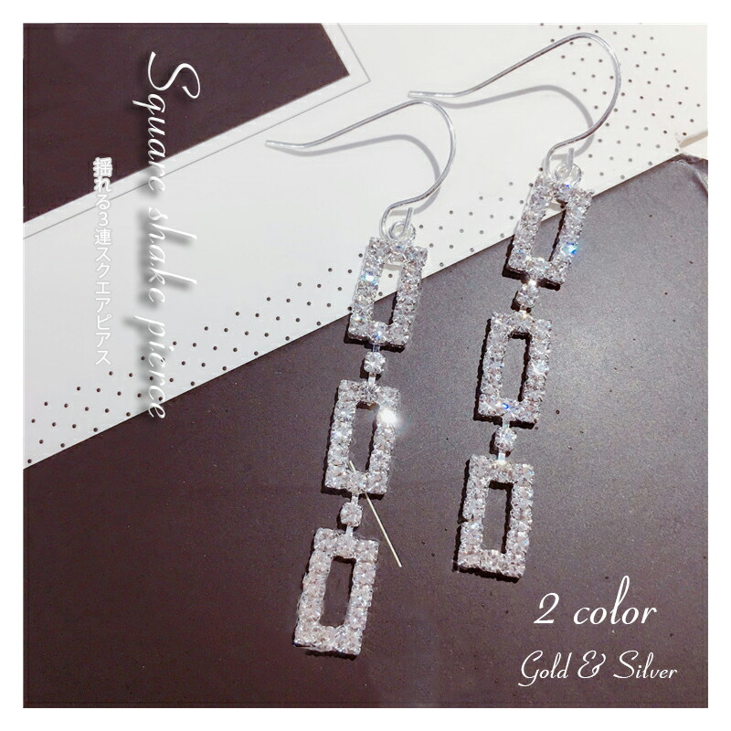 C-4きらきら輝くスクエアモチーフピア ジュエリー アクセサリー お得なセール ゴールド シルバー