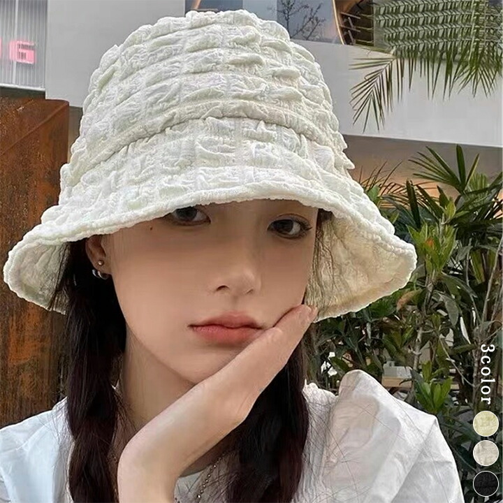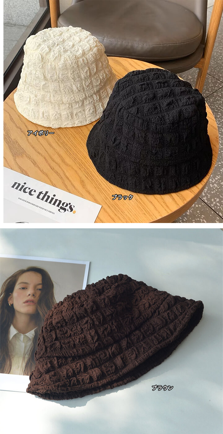 1B29 バケットハット ポコポコ 帽 帽子 レディース帽子 ハット 続々登場 アイボリー ブラウン ブラック