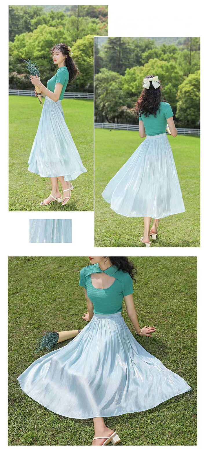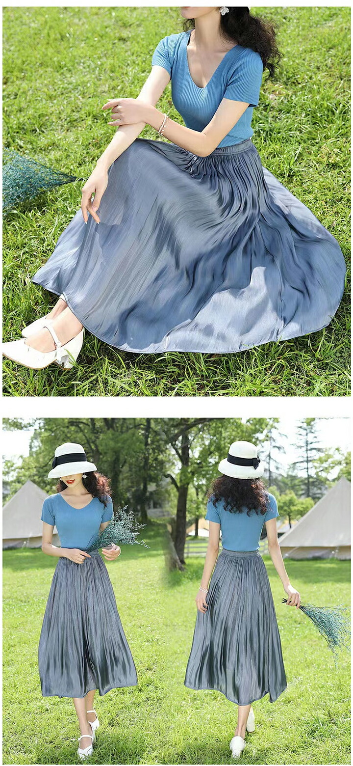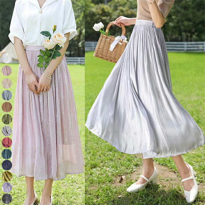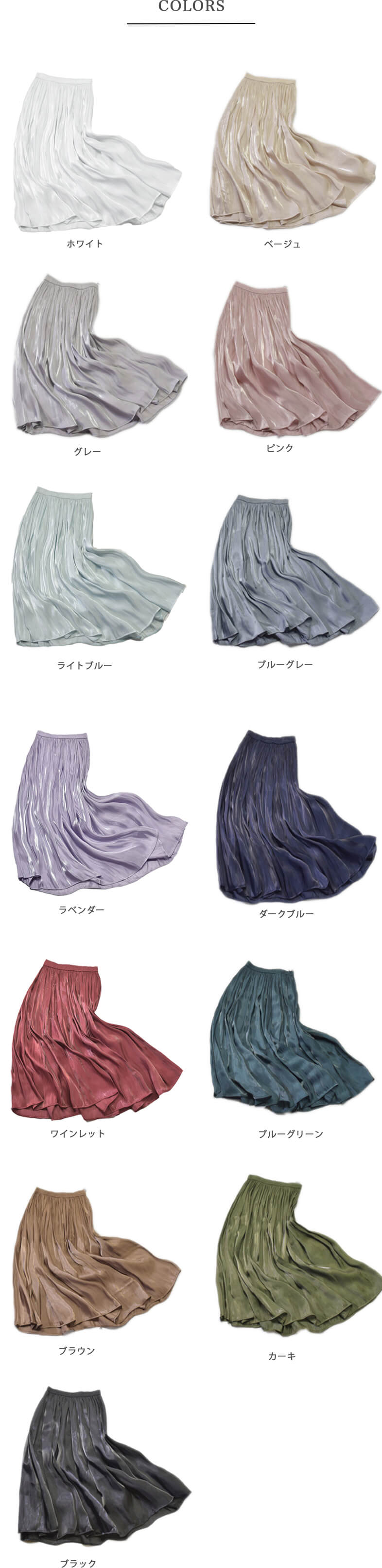 2A6 ロングスカート サテンプリーツ ワンピース 割引 ホワイト ベージュ グレー ピンク ライトブルー ブルーグレー ラベンダー ダークブルー ワインレッド ブルーグリーン ブラウン カーキ ブラック