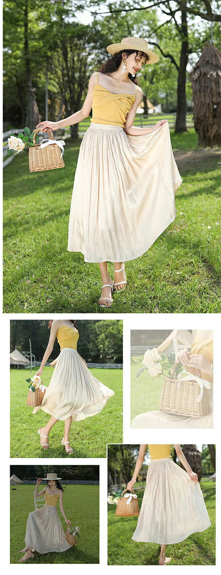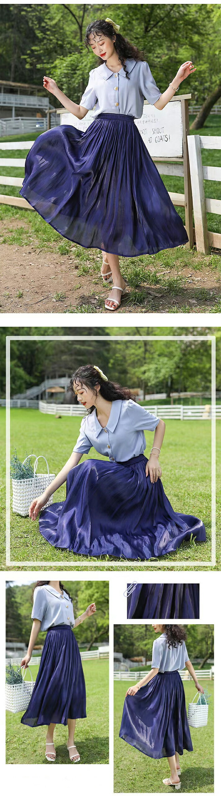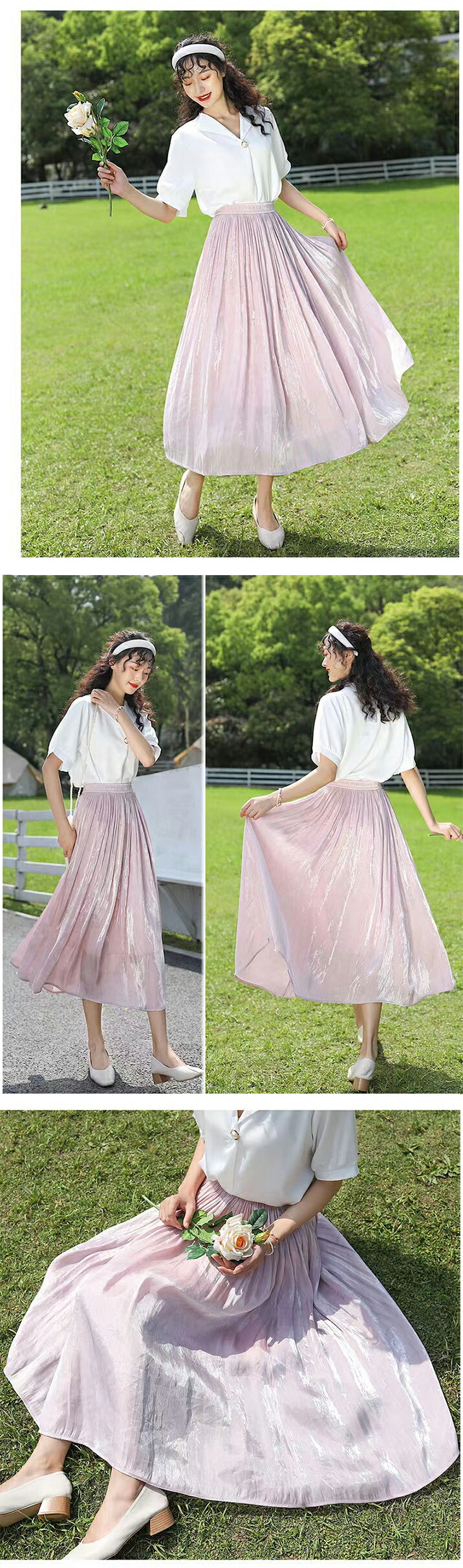 2A6 ロングスカート サテンプリーツ ワンピース 割引 ホワイト ベージュ グレー ピンク ライトブルー ブルーグレー ラベンダー ダークブルー ワインレッド ブルーグリーン ブラウン カーキ ブラック