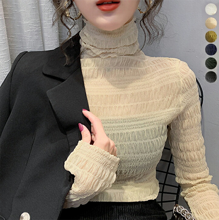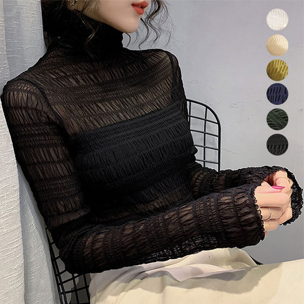 1A22 シースルートップス レースト レディースファッション 人気 ホワイト ブラック ネイビー エルムグリーン アイボリー