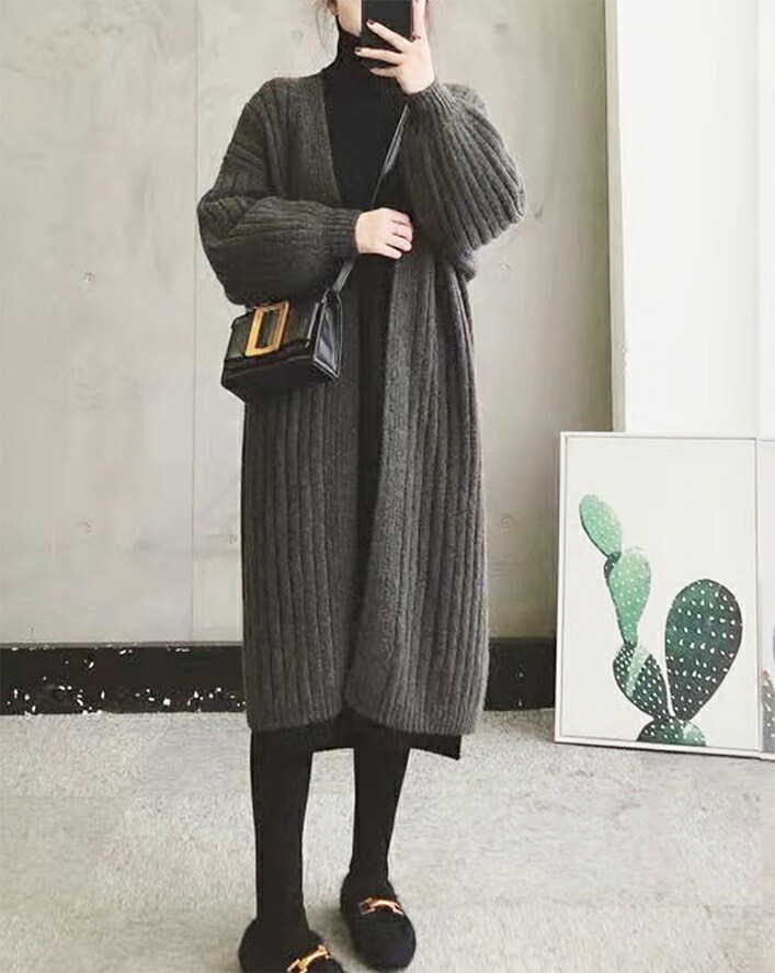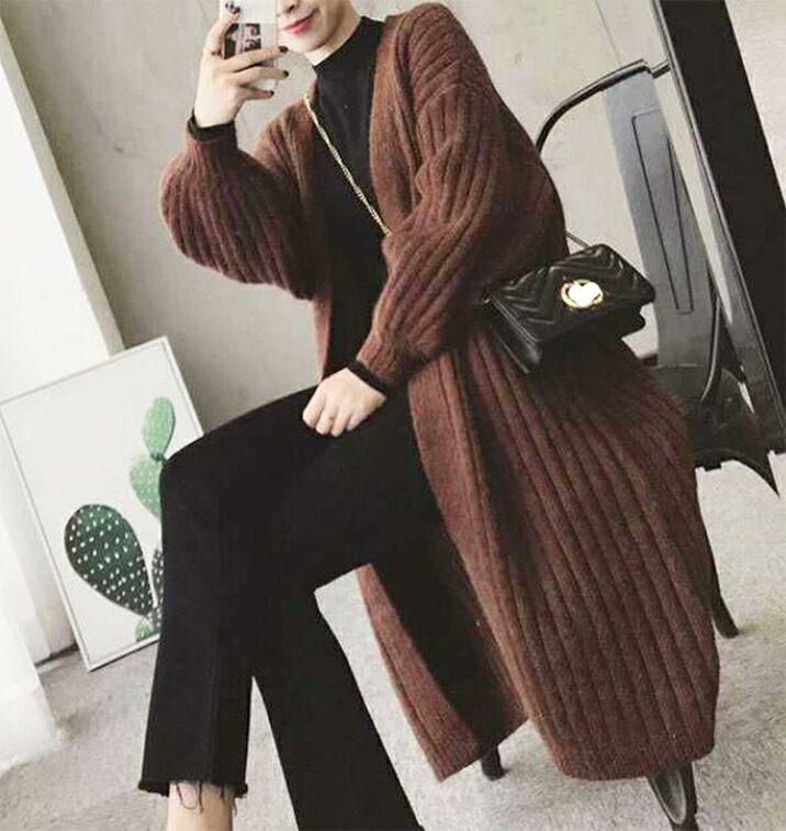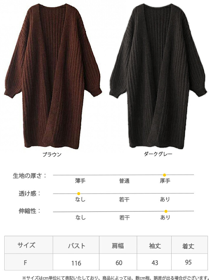 3B11 チャンキーニット カーディガ レディースファッション 豊富な品揃え ブラウン ダークグレー