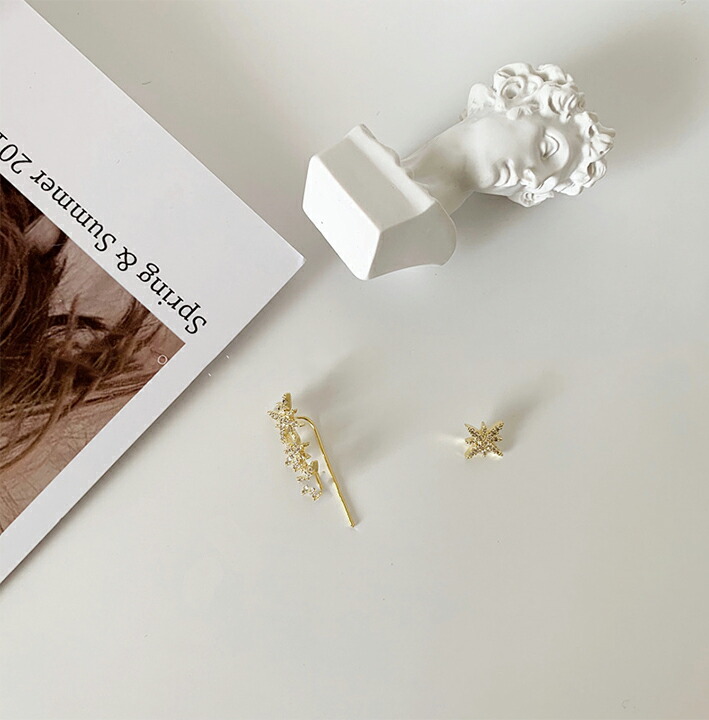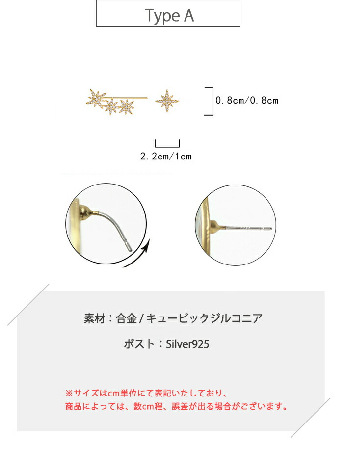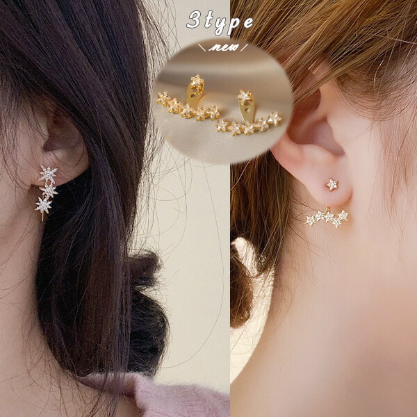 D-11星ピアスキャッチ 非対称 3タ レディースジュエリー アクセサリー ピアス 豊富 Type A Type B Type C ゴールド シルバー