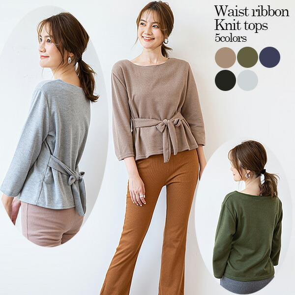 2A475カラー展開 ウエストリボンニ レディースファッション 通販 ブラック ネイビー カーキ