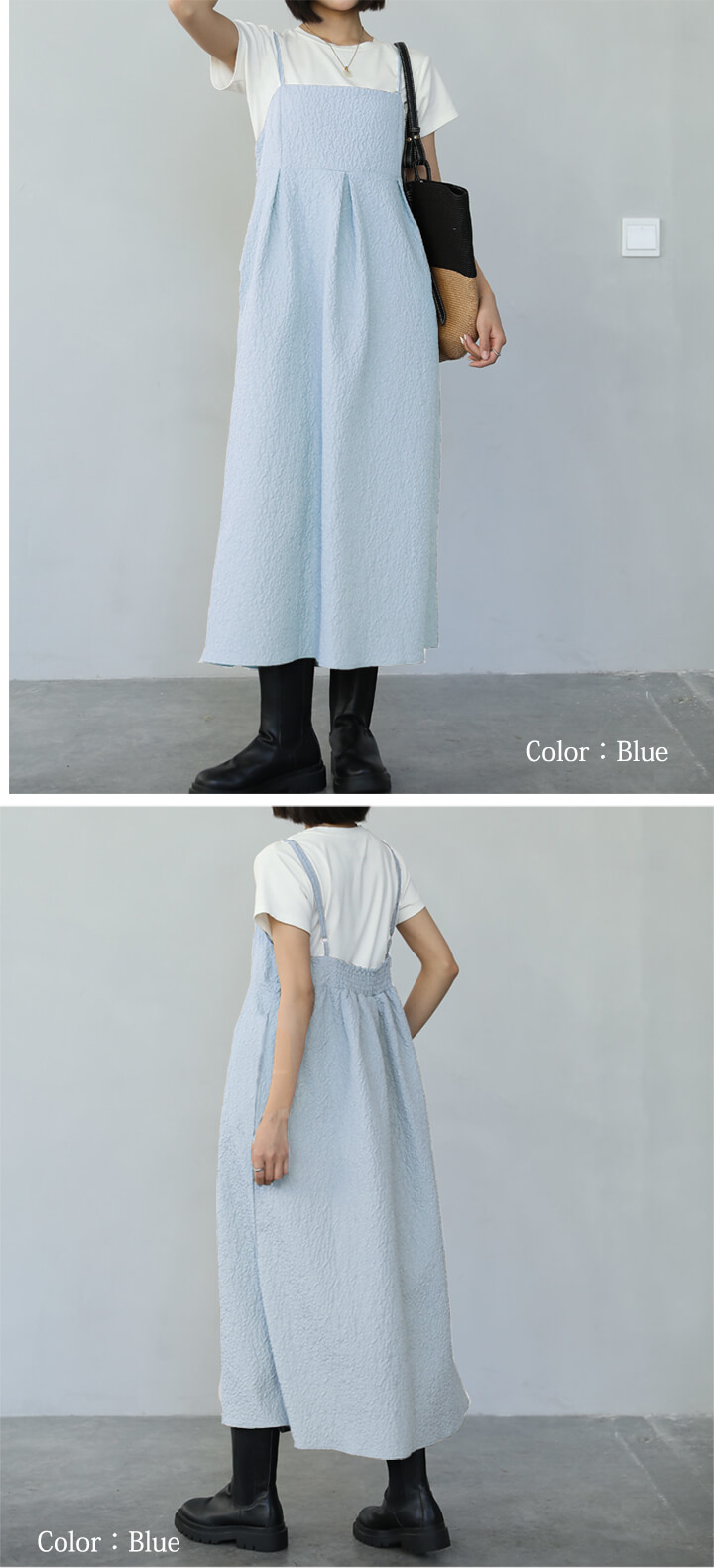 2B3 ロングキャミワンピース レディ ワンピース 42%Off M L XL ブルー ブラウン グレー ネイビー ブラック