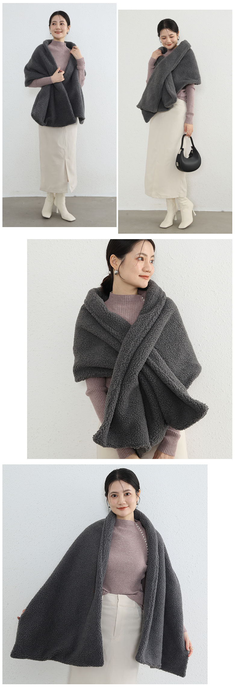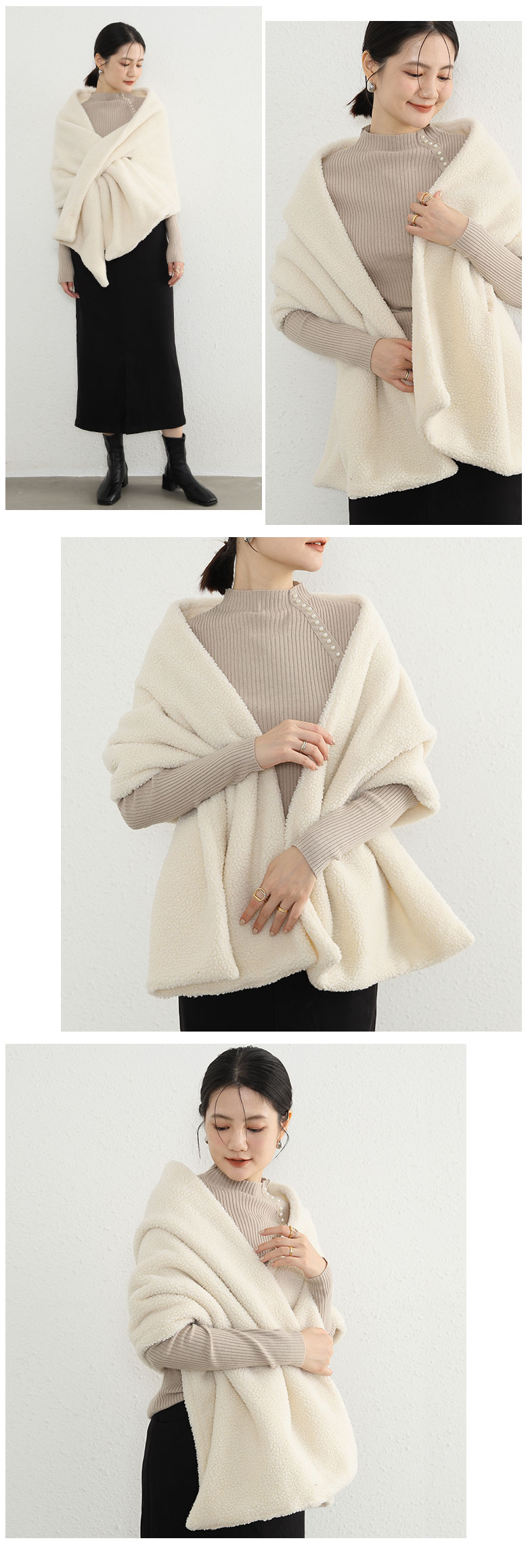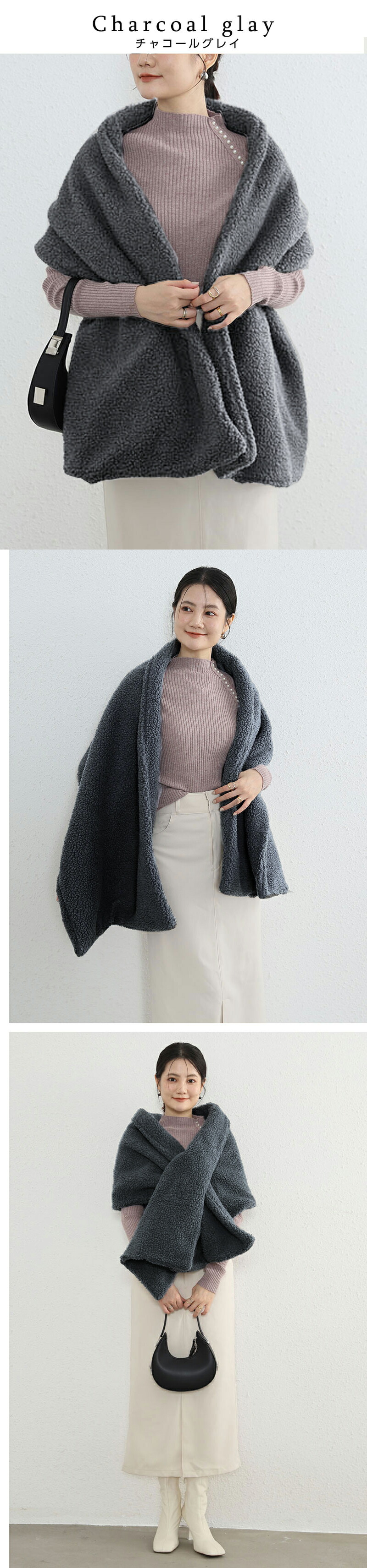 ボアストール 暖か 羽織 レディース ワンピース 続々登場 キャメル アッシュグレー チャコールグレー アイボリー ベージュ ブラック