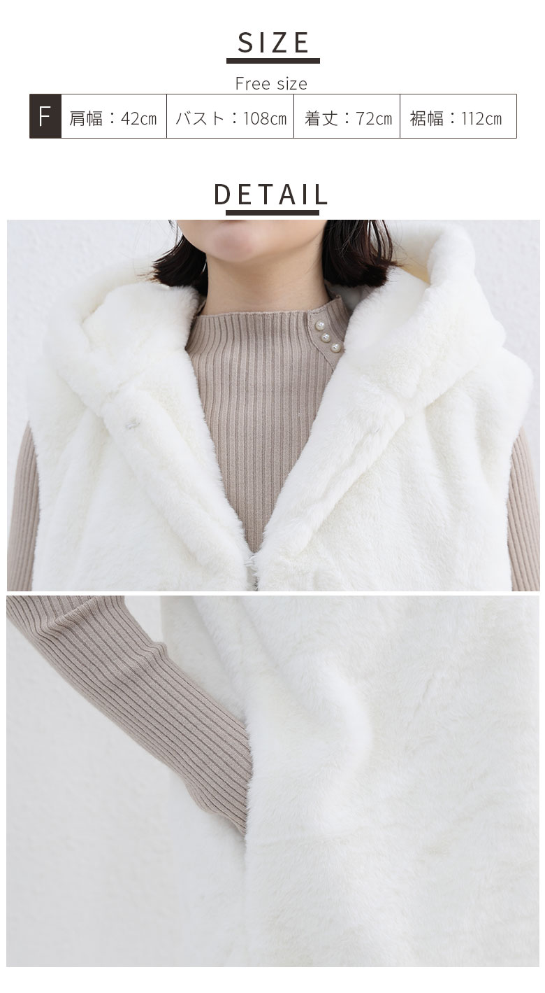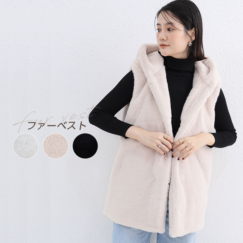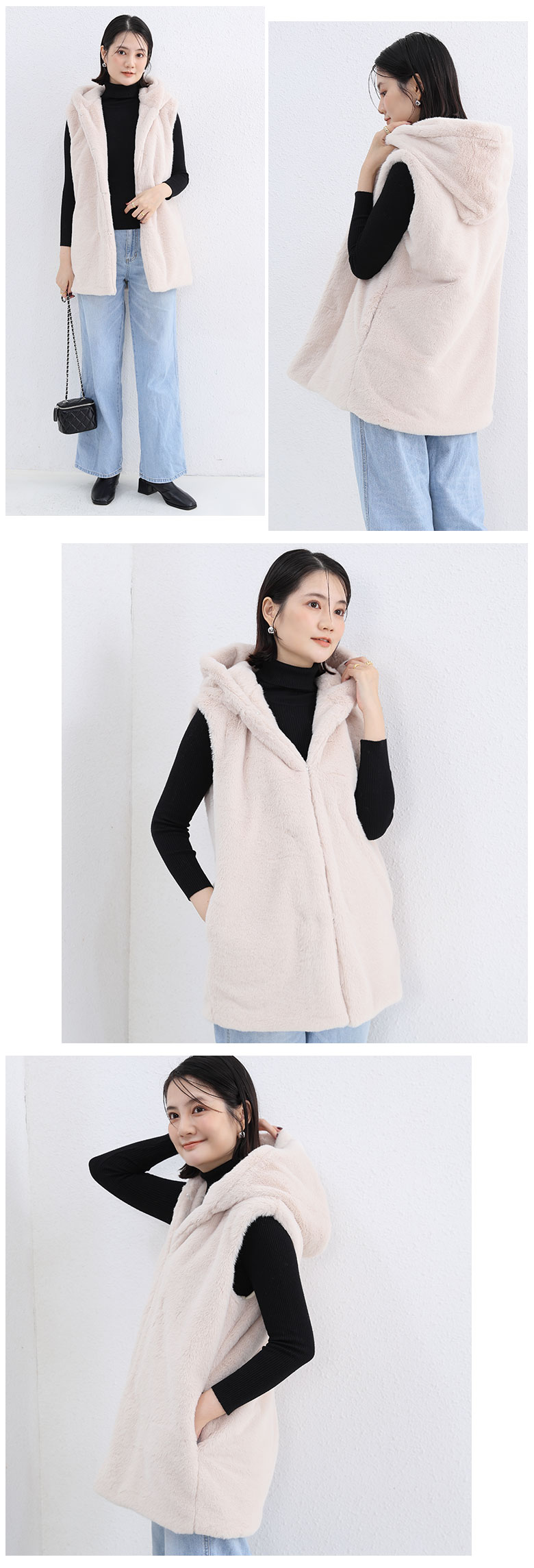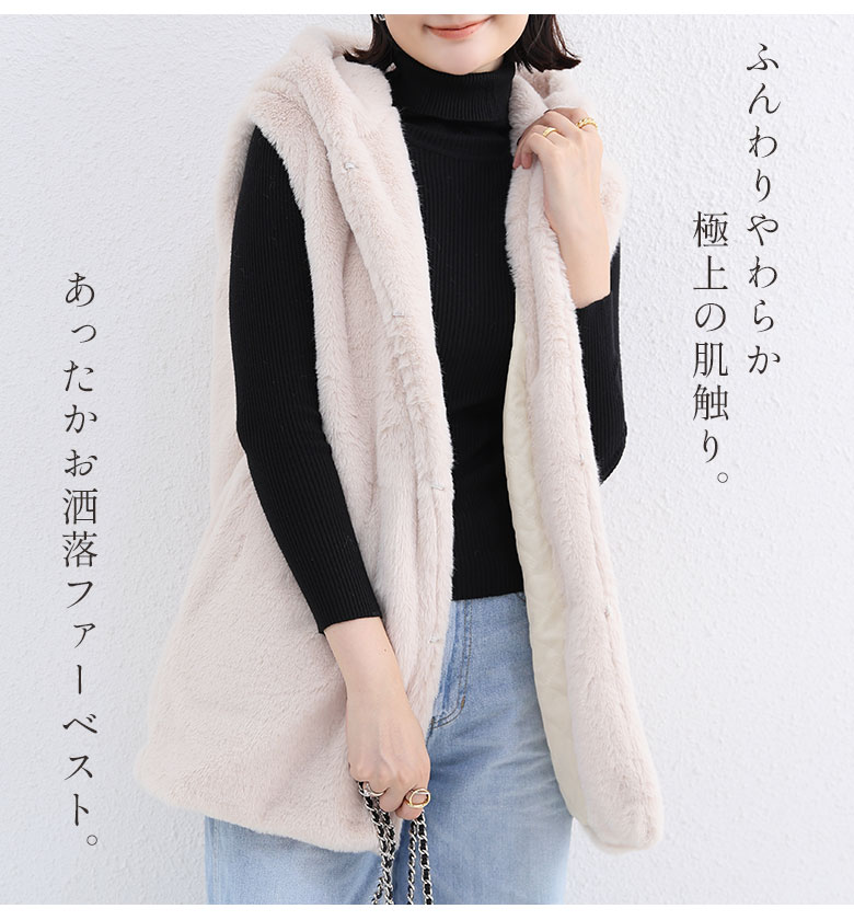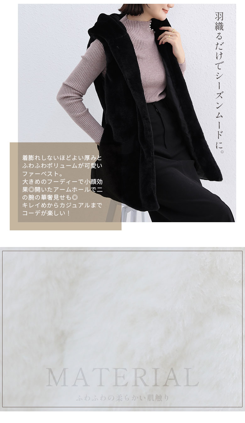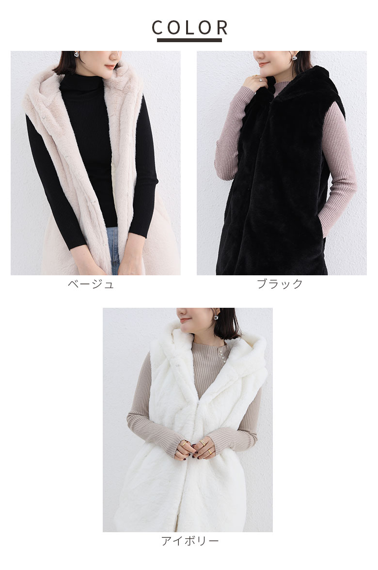 3B31 フード付き エコファーベスト レディースファッション お得なセール ブラック アイボリー ベージュ