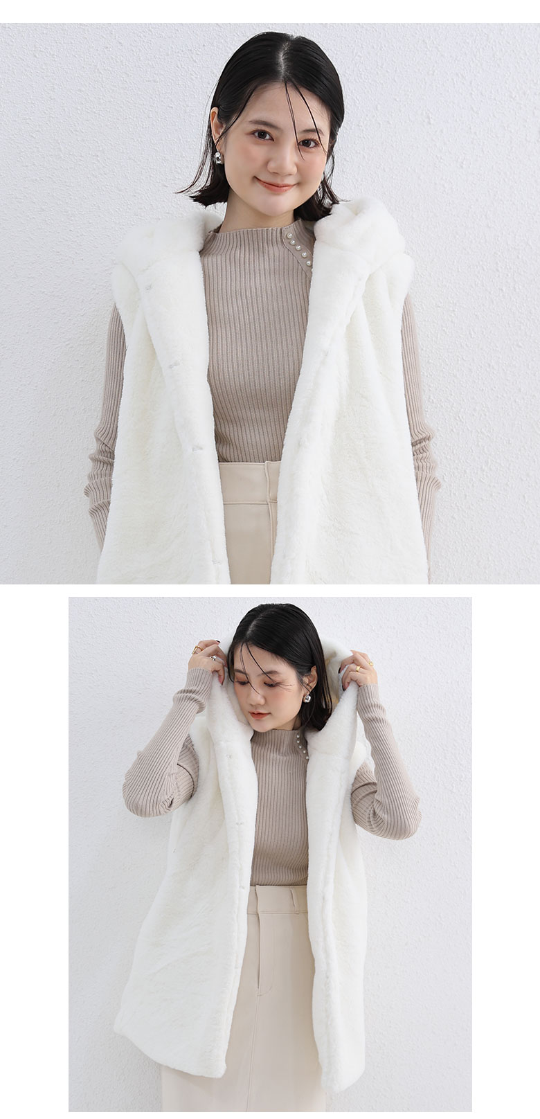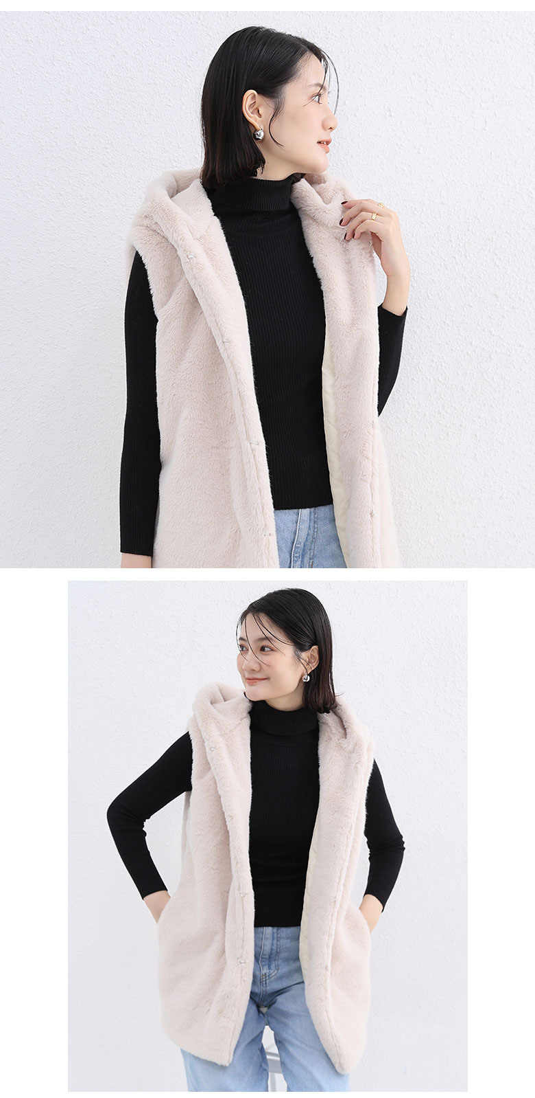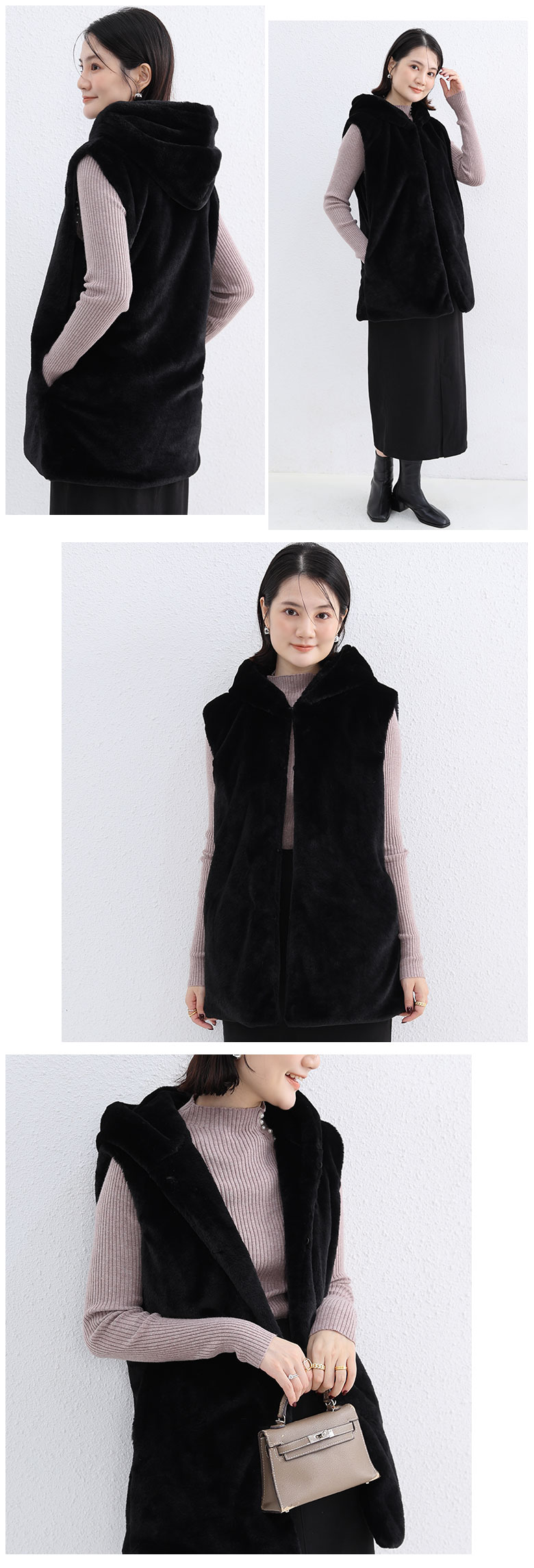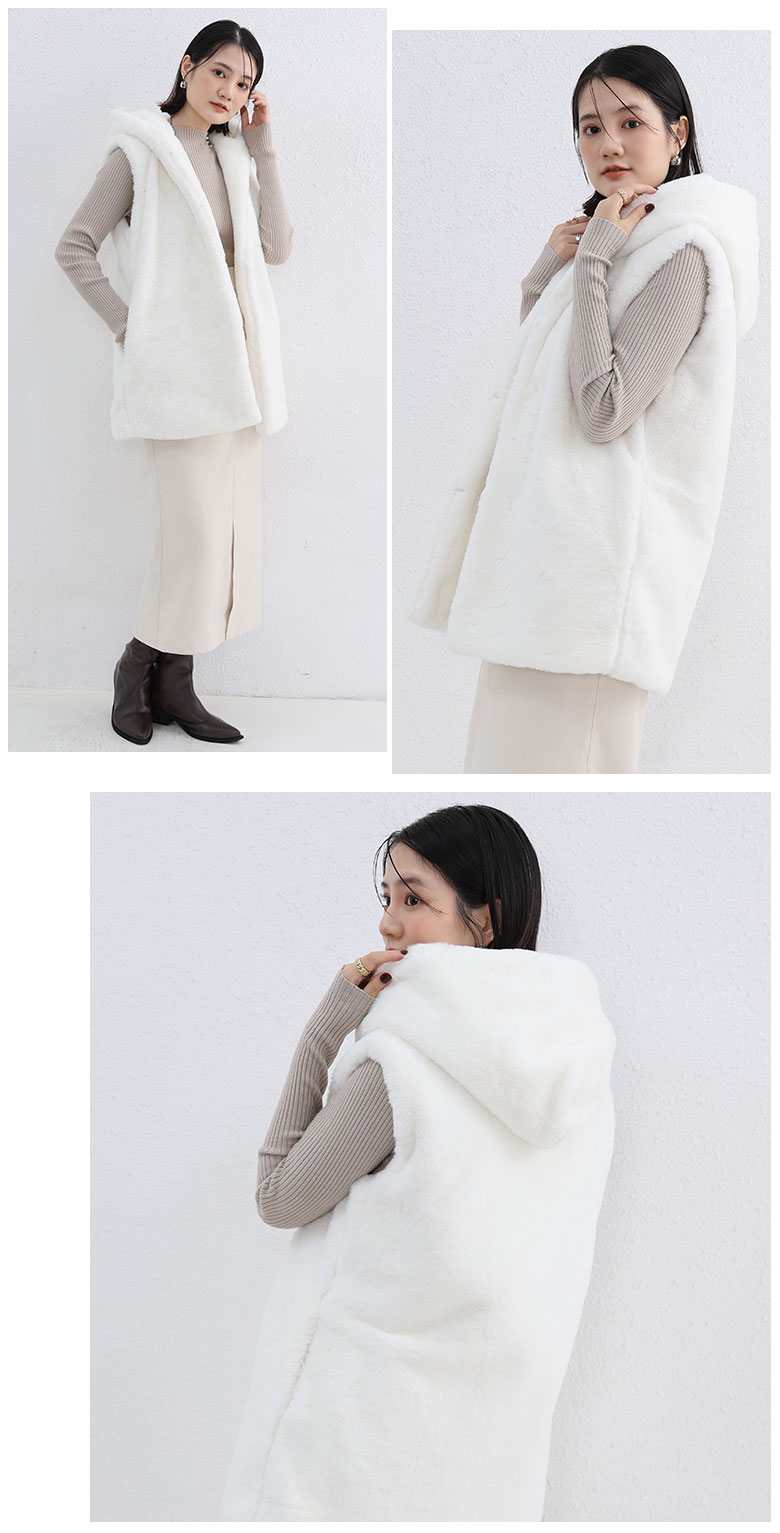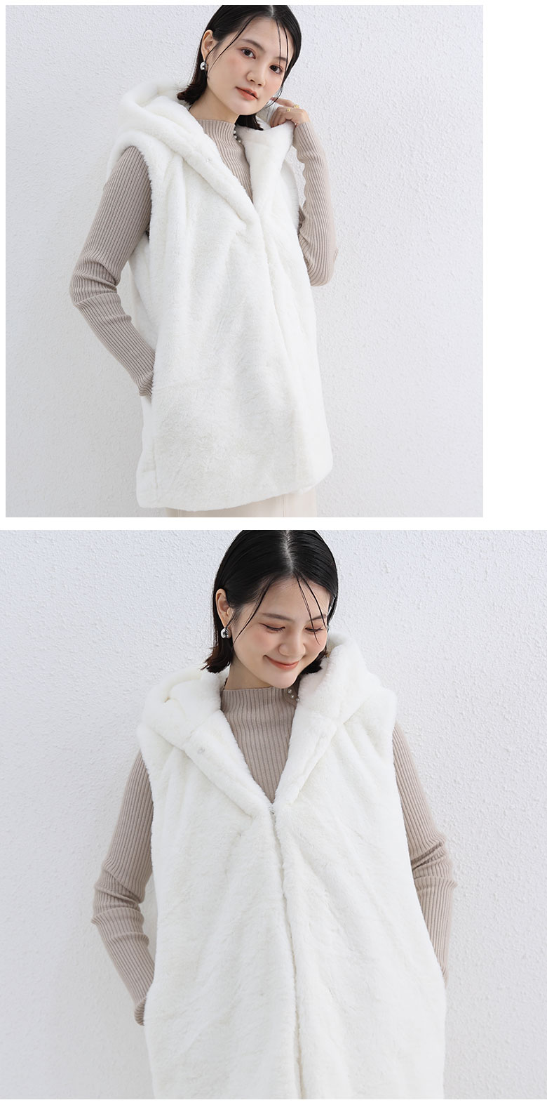 3B31 フード付き エコファーベスト レディースファッション お得なセール ブラック アイボリー ベージュ