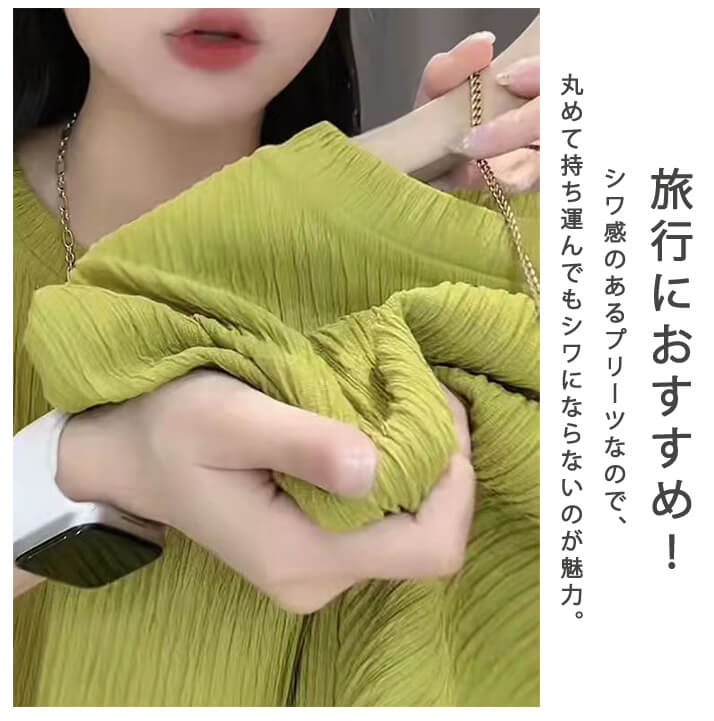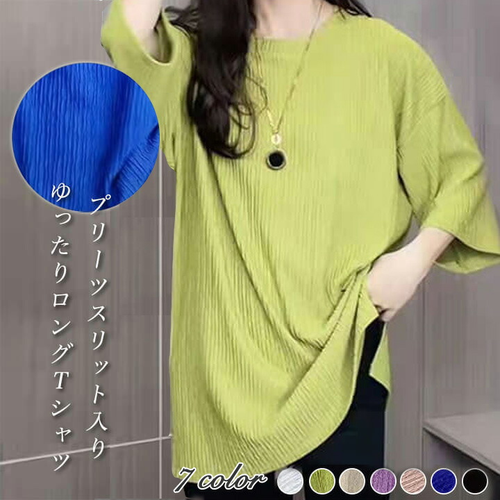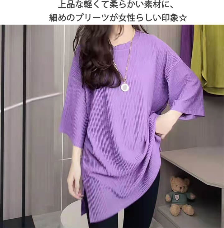 2A46プリーツスリットロングカットソ トップス Tシャツ カットソー 特集 ブラック パープル グリーン ホワイト ブルー ピンク