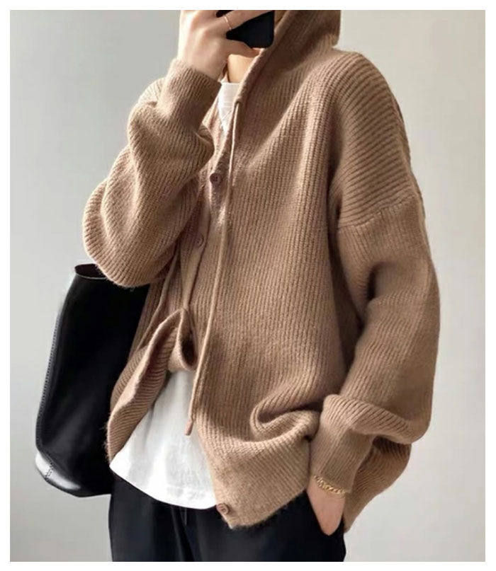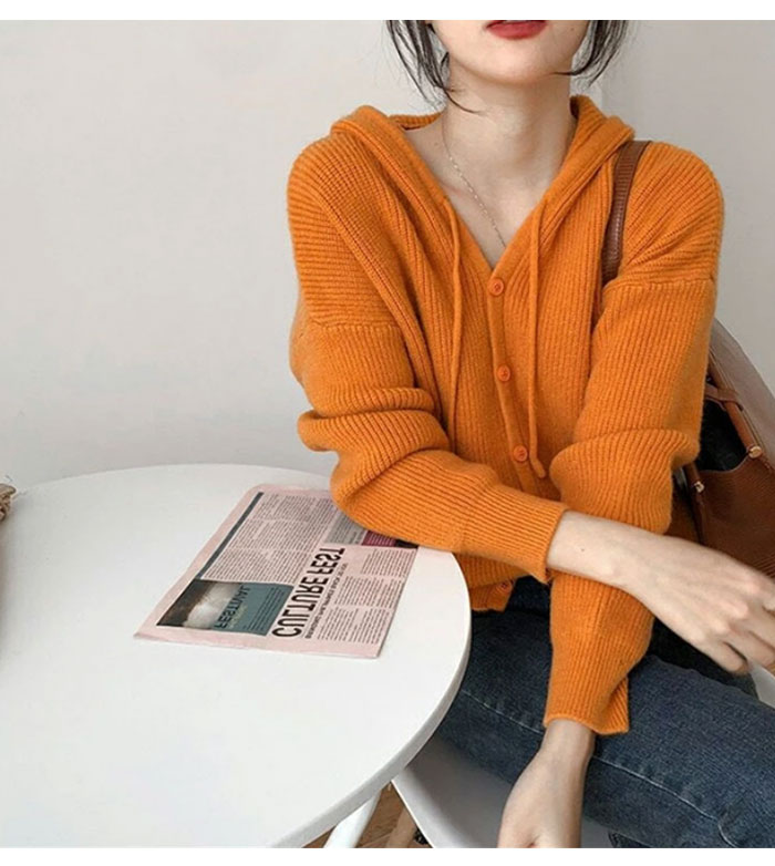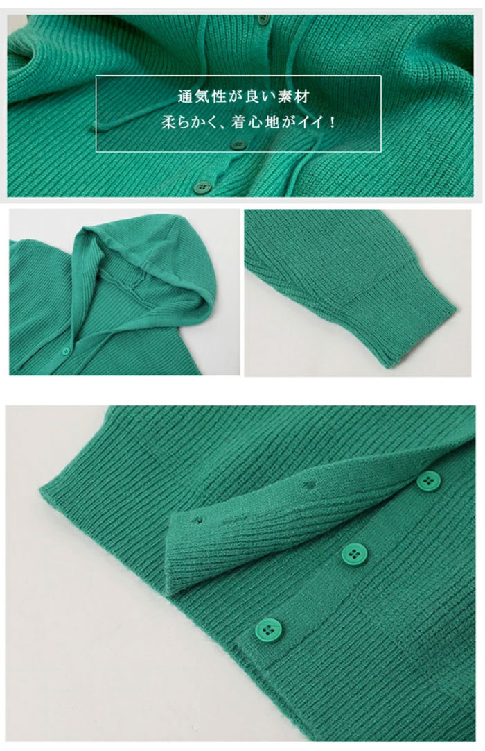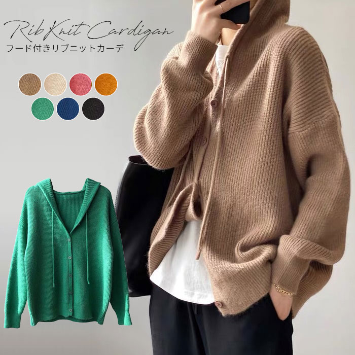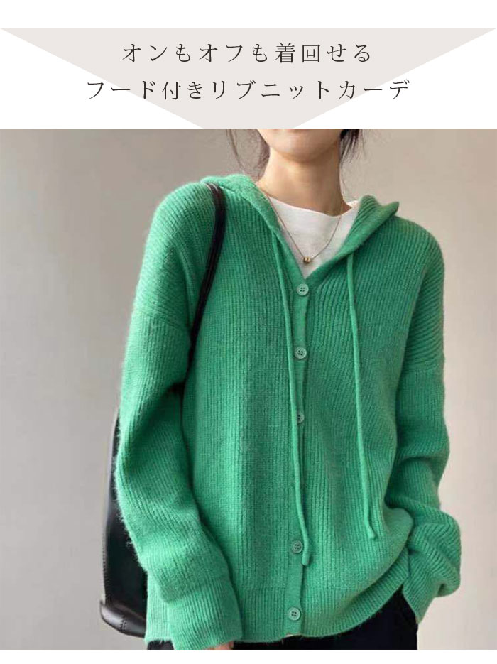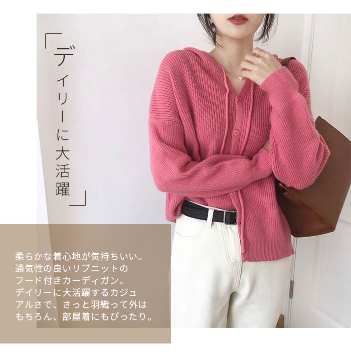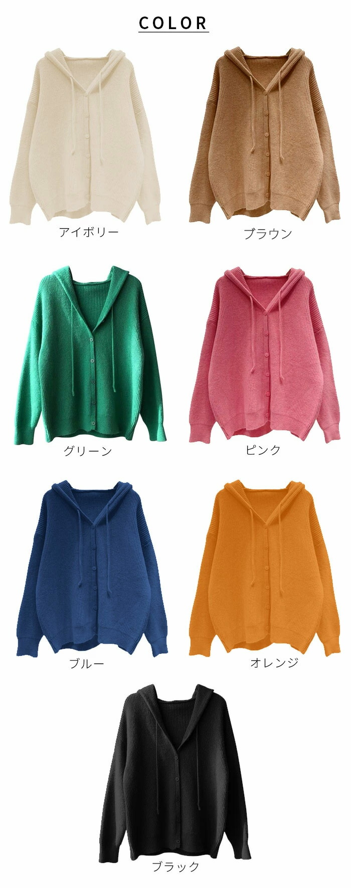 3B42フード付き 長袖ニットパーカ トップス ニット セーター ニットパーカー 続々登場 アイボリー オレンジ ピンク グリーン ブラウン ブラック ブルー