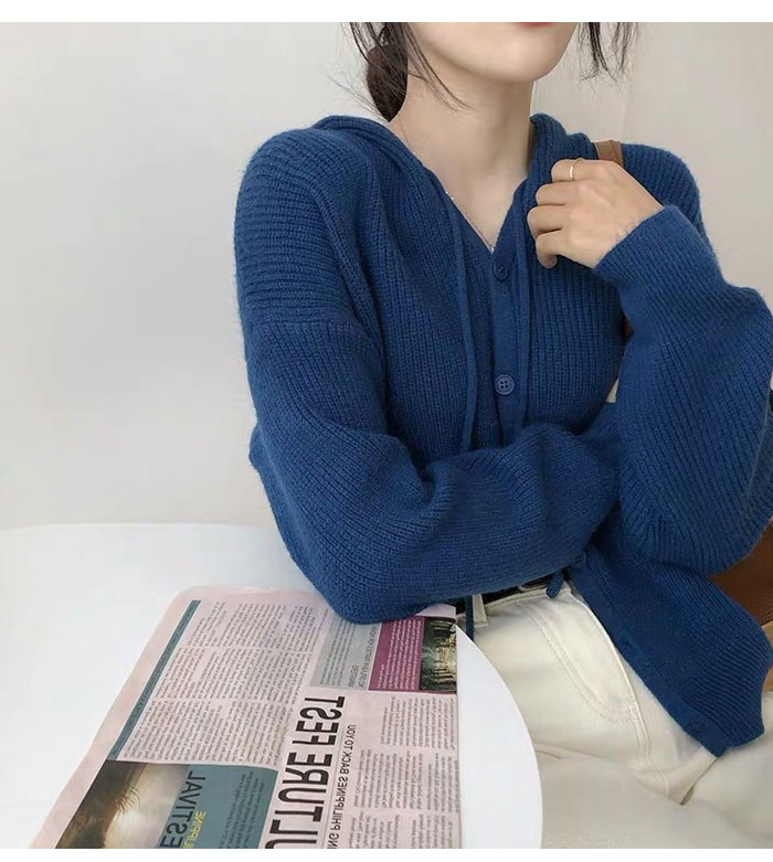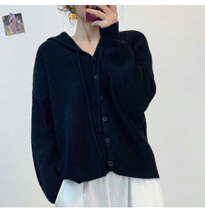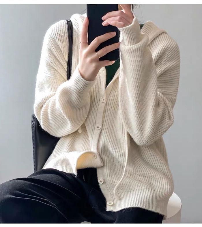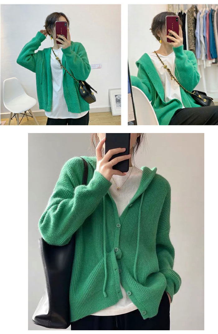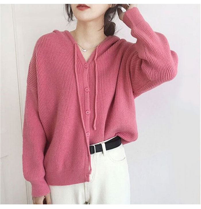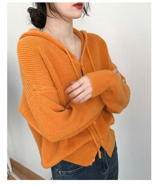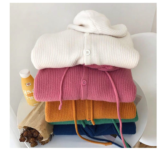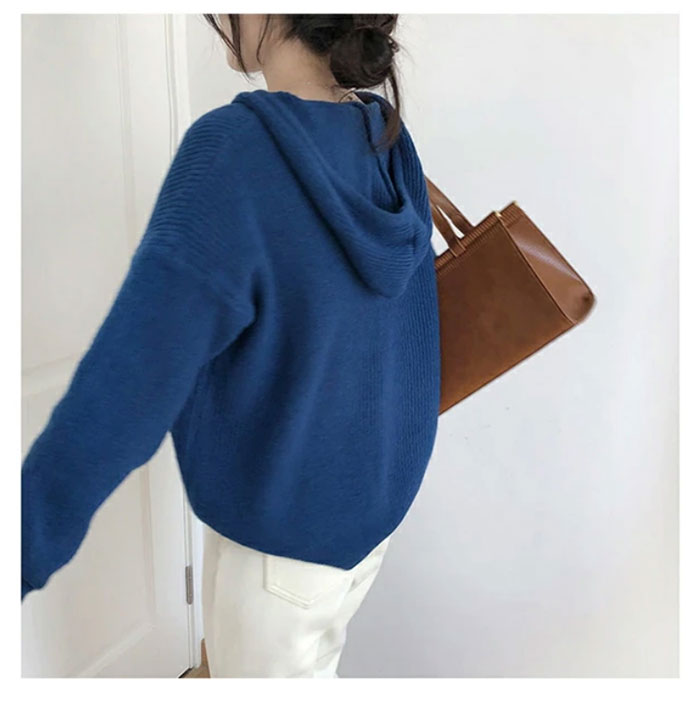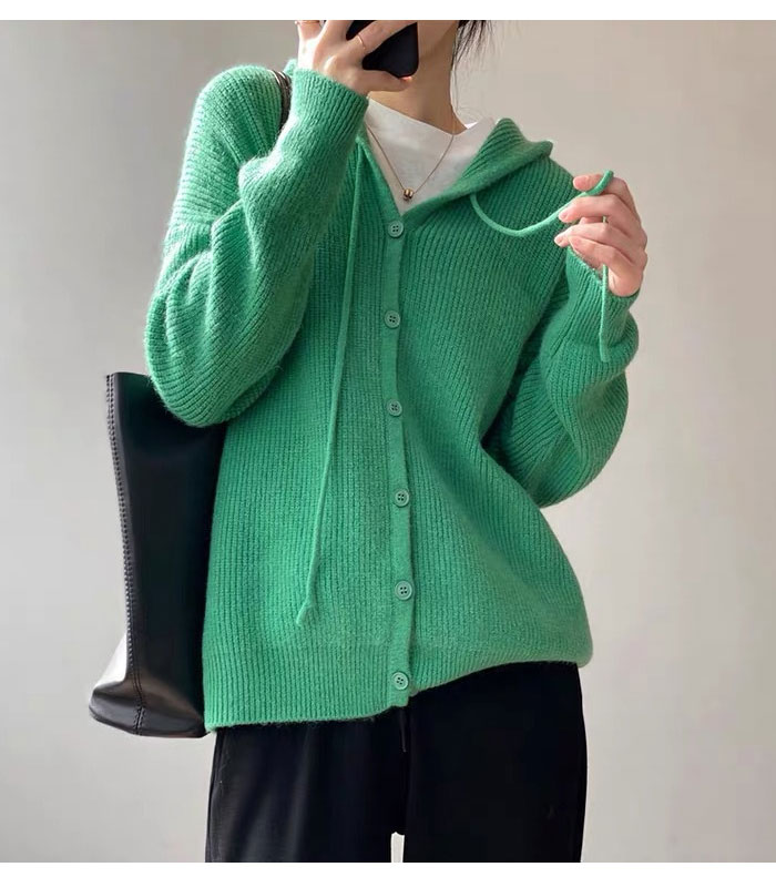 3B42フード付き 長袖ニットパーカ トップス ニット セーター ニットパーカー 続々登場 アイボリー オレンジ ピンク グリーン ブラウン ブラック ブルー