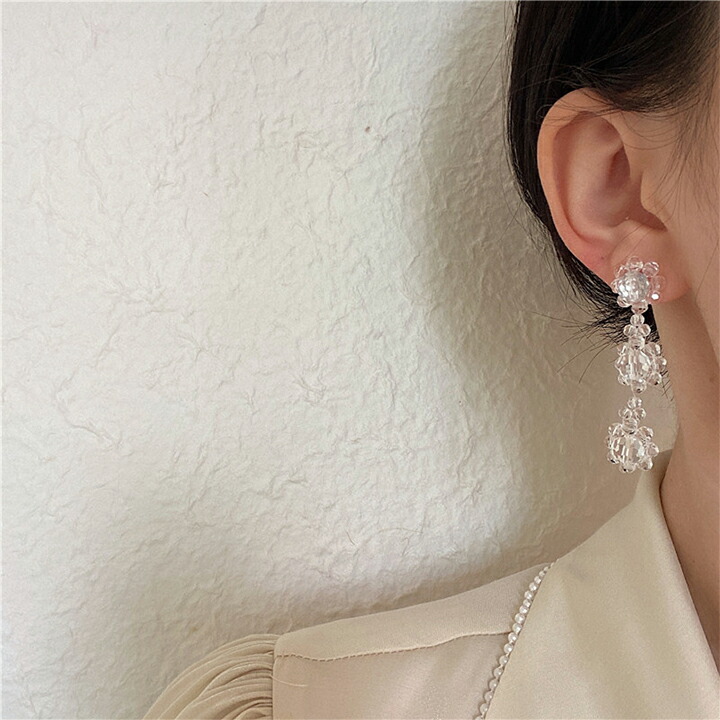 D-82タイプ花水晶ピアス3連5連大人 ジュエリー アクセサリー 豊富 3連 5連