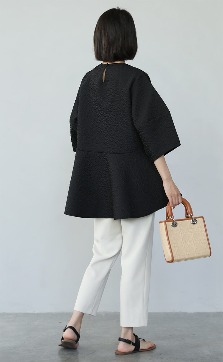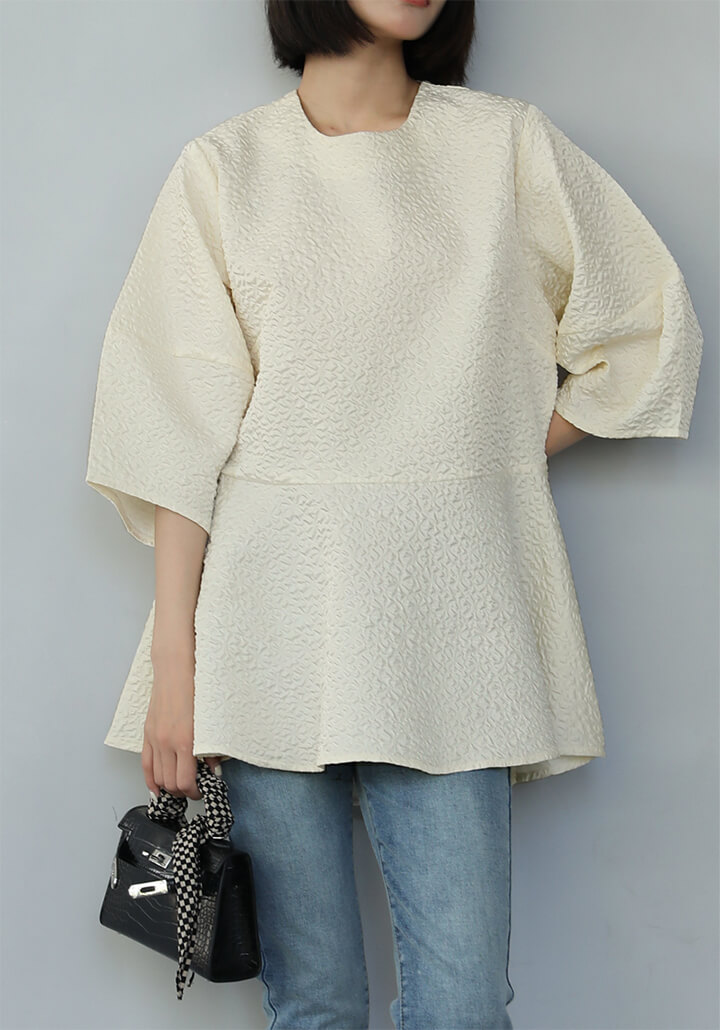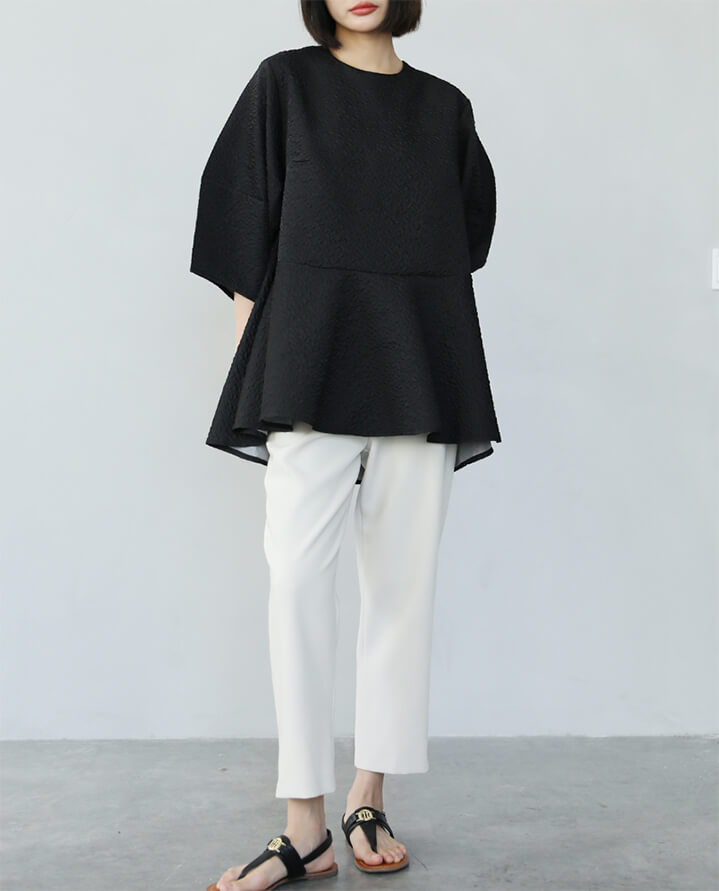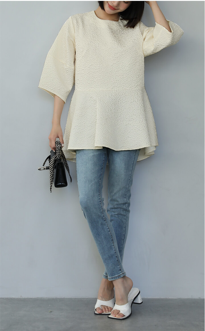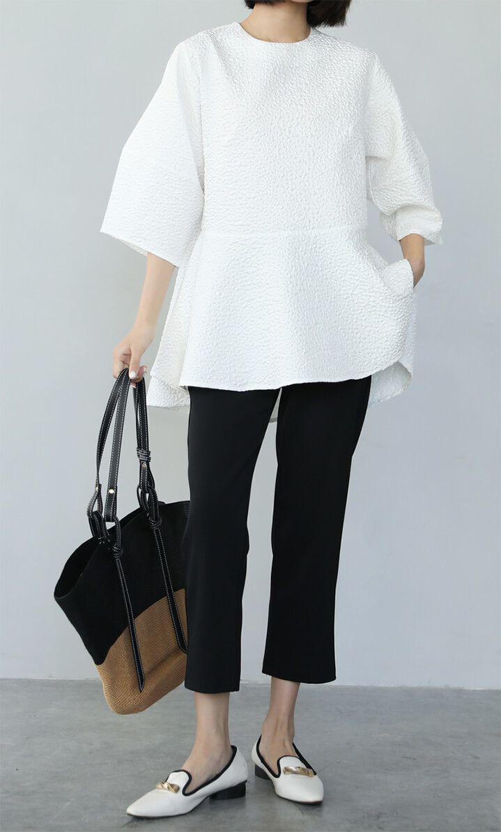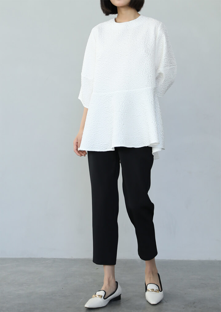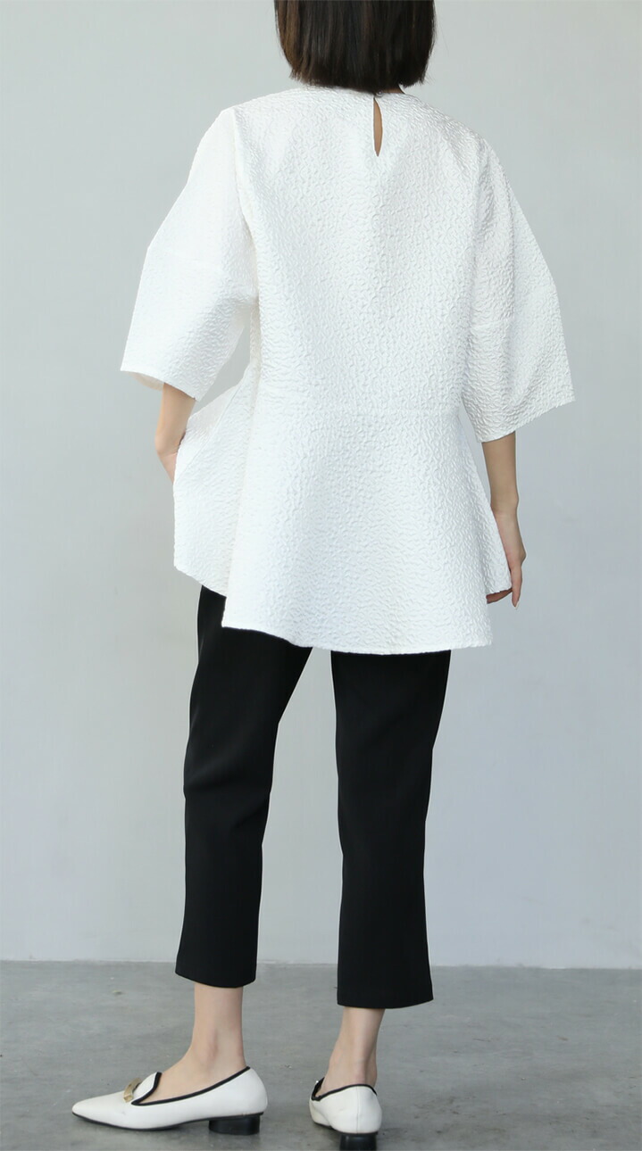 2A51 ふくれジャガードペプラムトッ レディースファッション 人気 M L ホワイト ベージュ ブラック