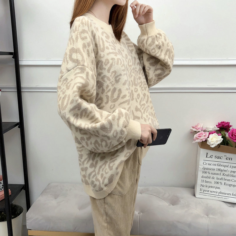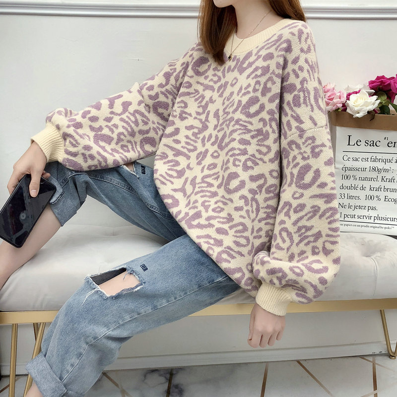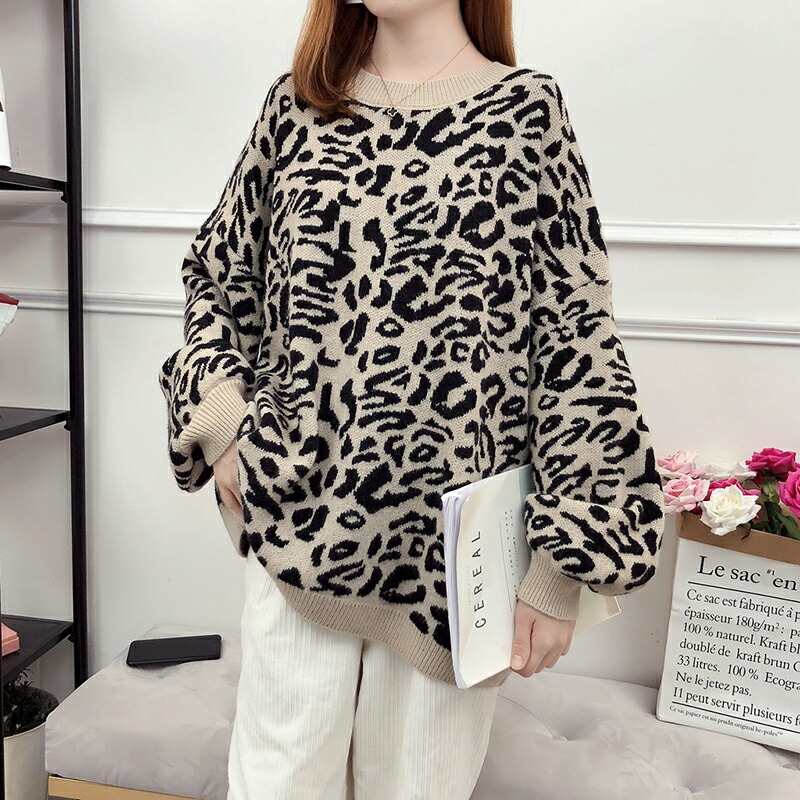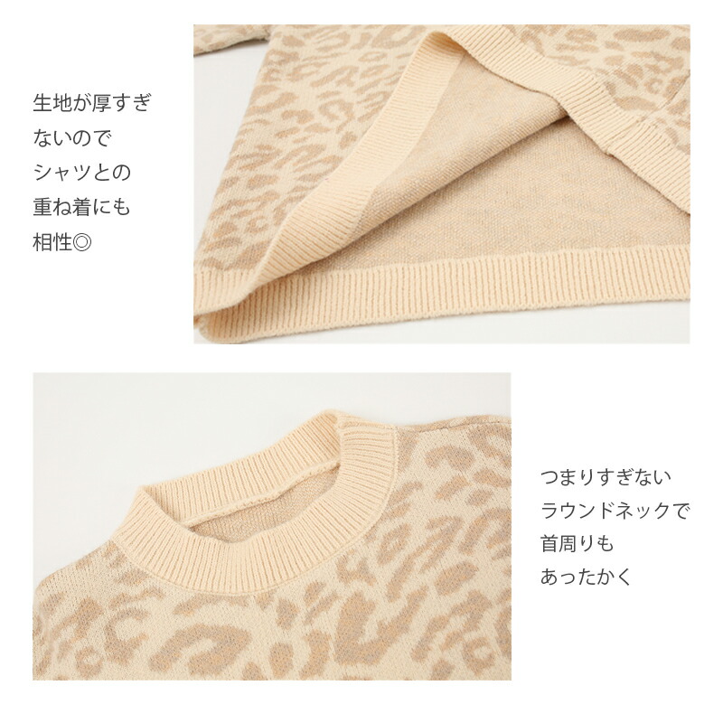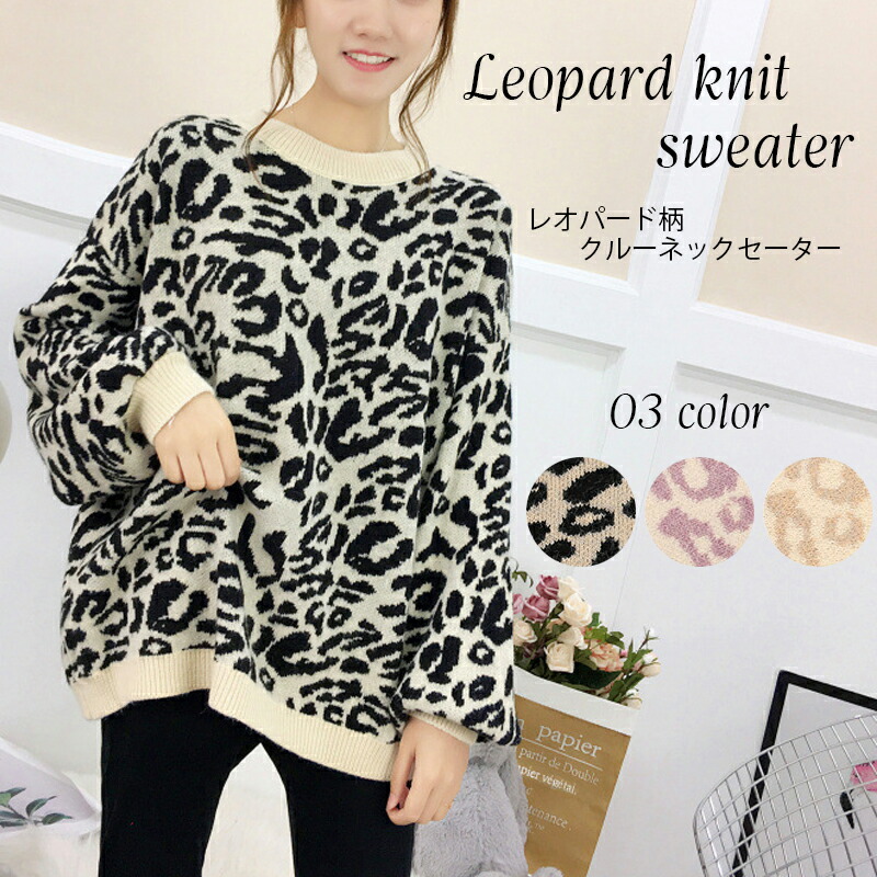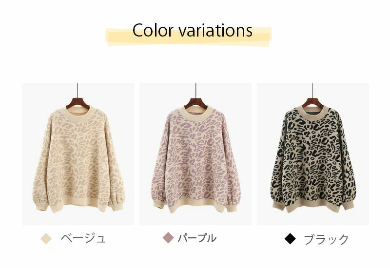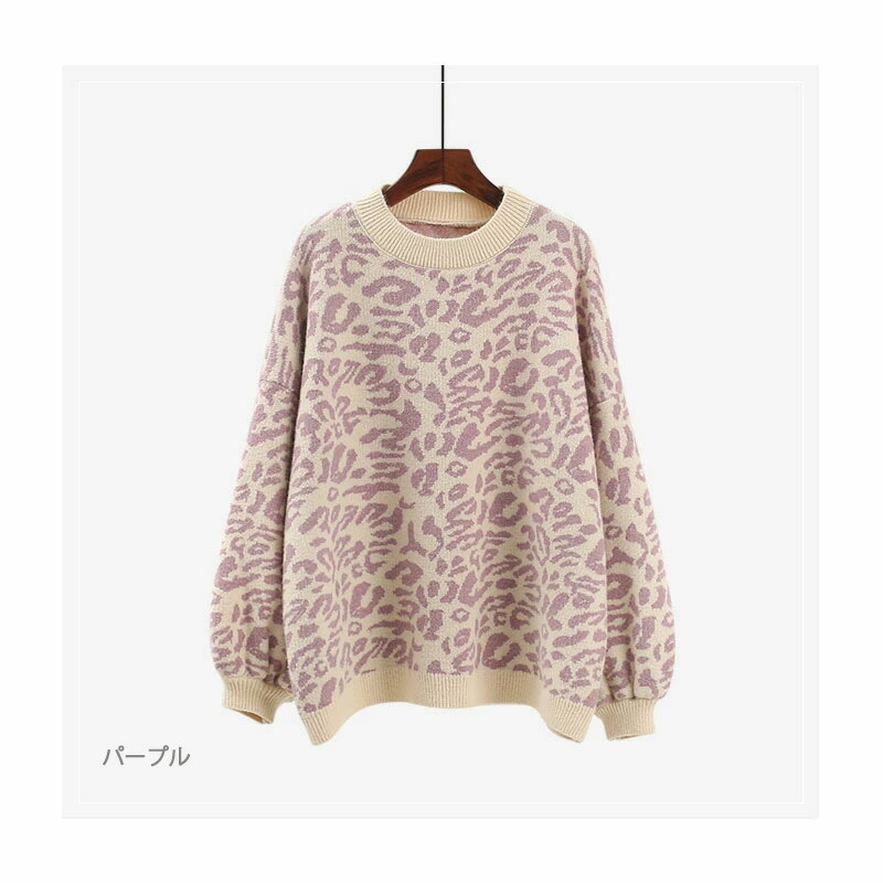 3B20レオパードニット セーター ニ トップス ニット セーター セーター お得なセール ベージュ ブラック パープル