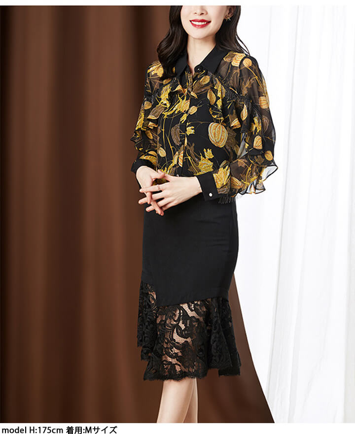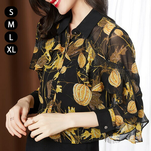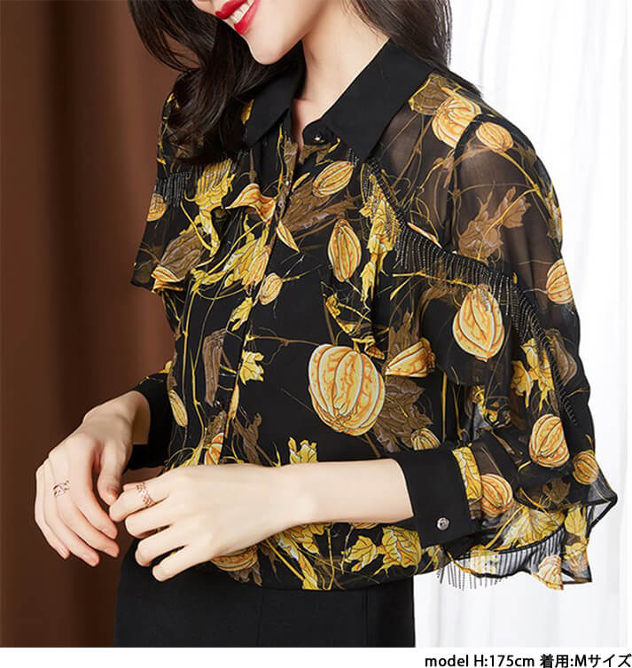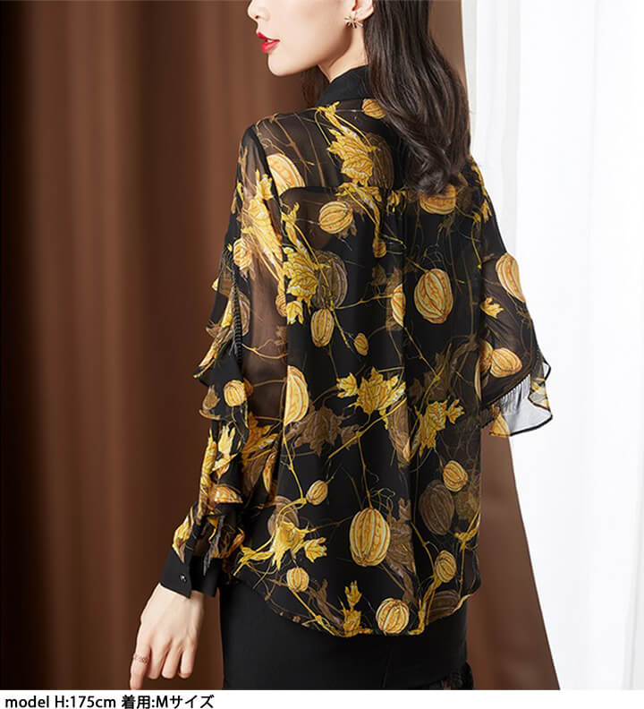 シフォンブラウス シアーブラウス ボリューム袖