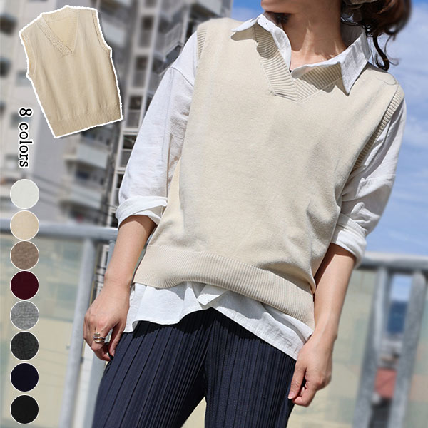 2A158色 無地 ニットベスト レデ レディースファッション お得なセール M L XL XXL オフホワイト ベージュ ブラウン ワインレッド グレー ダークグレー ネイビー ブラック