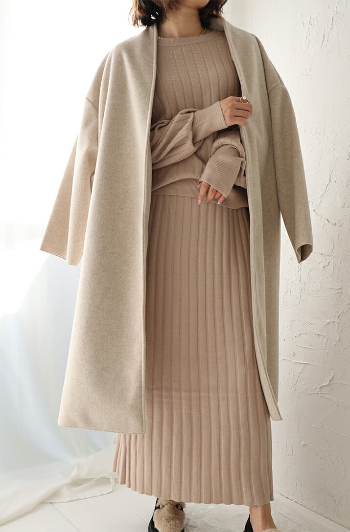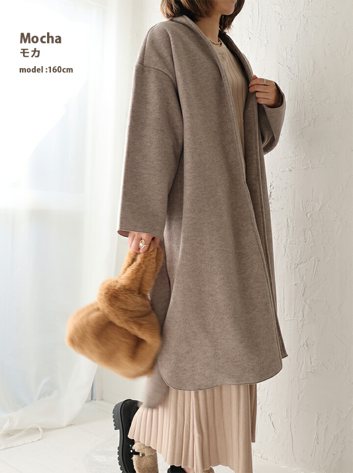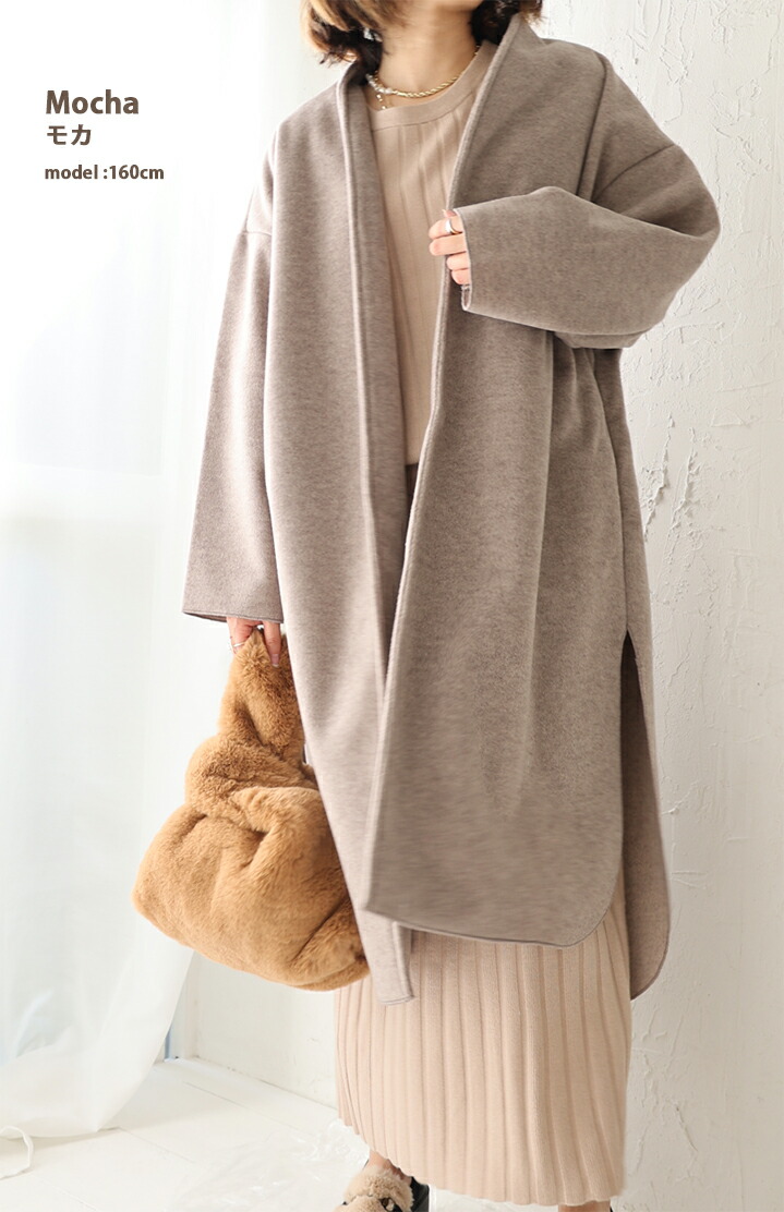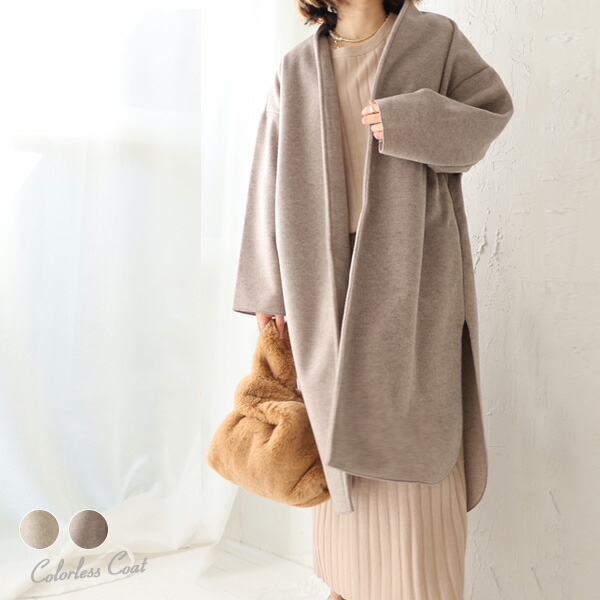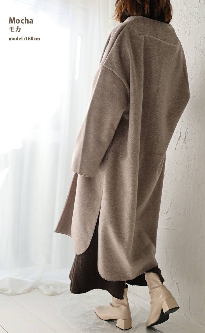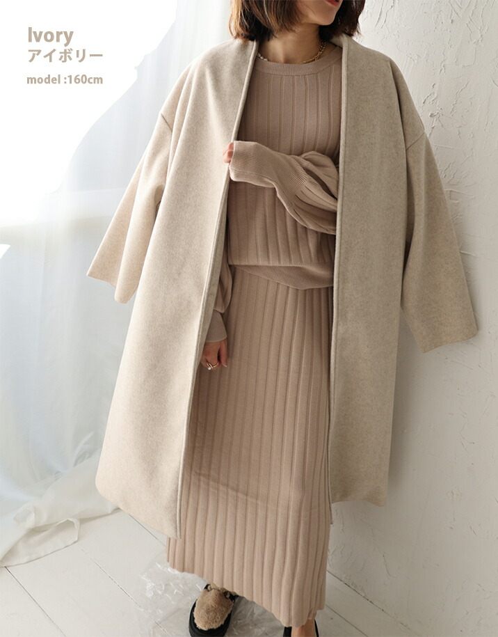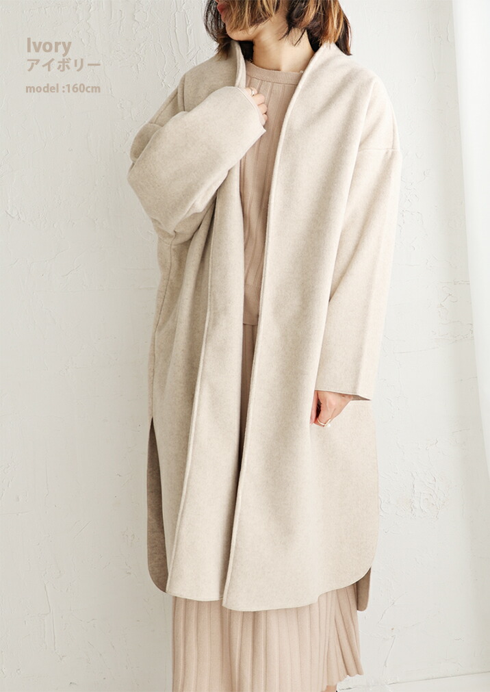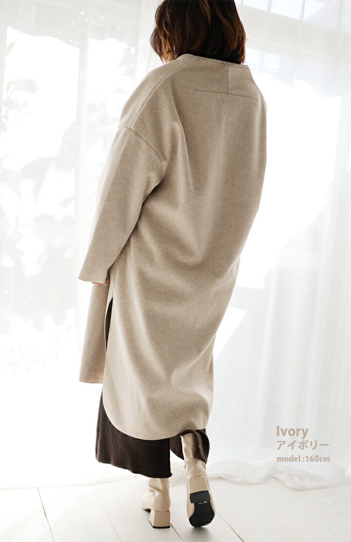 3B7 ノーカラーロングコート レディ レディースファッション お得なセール アイボリー モカ