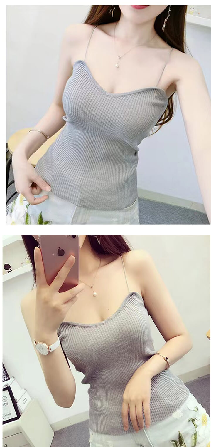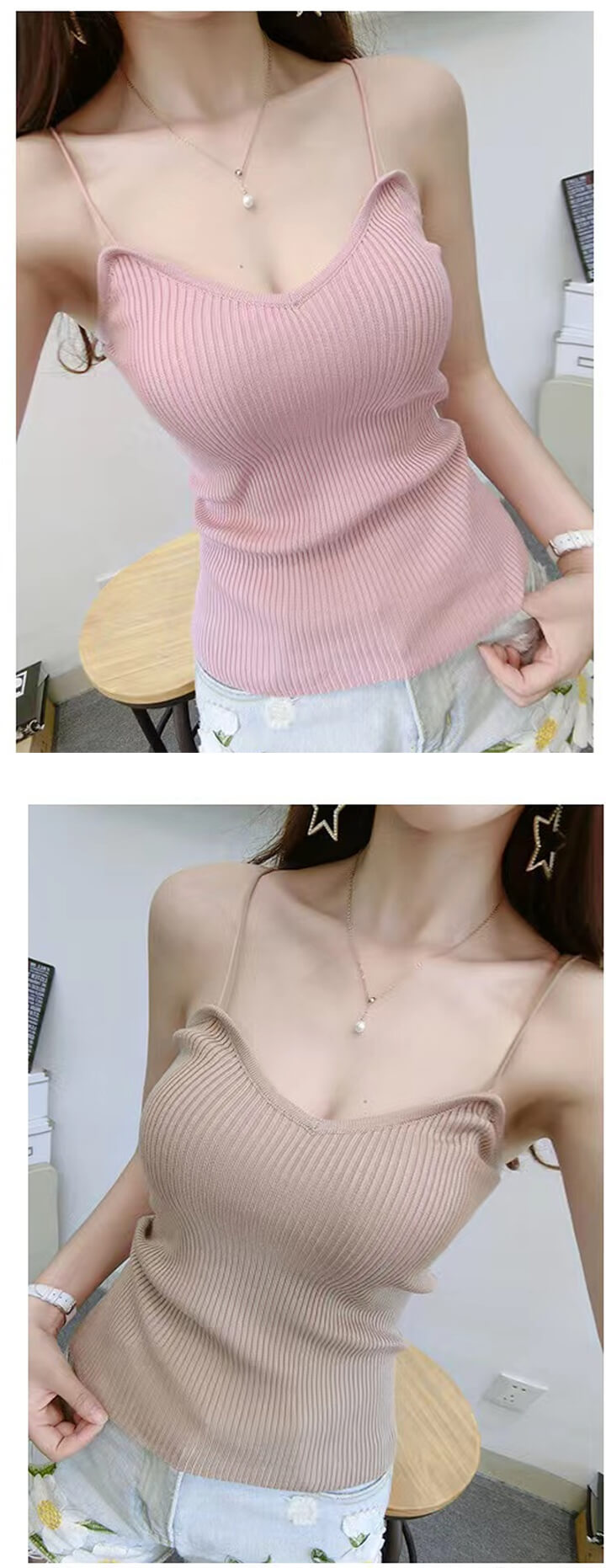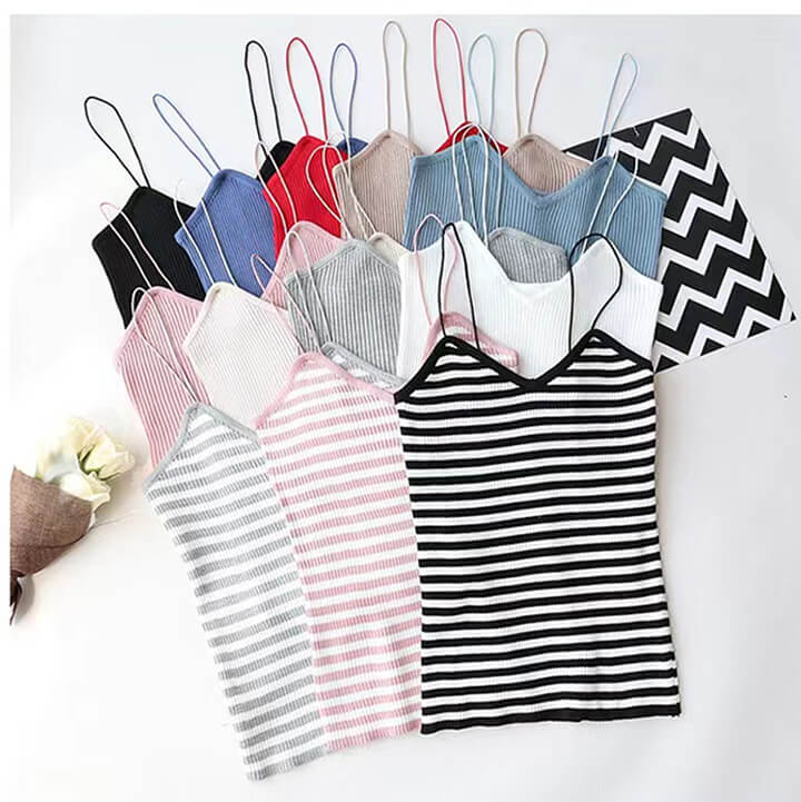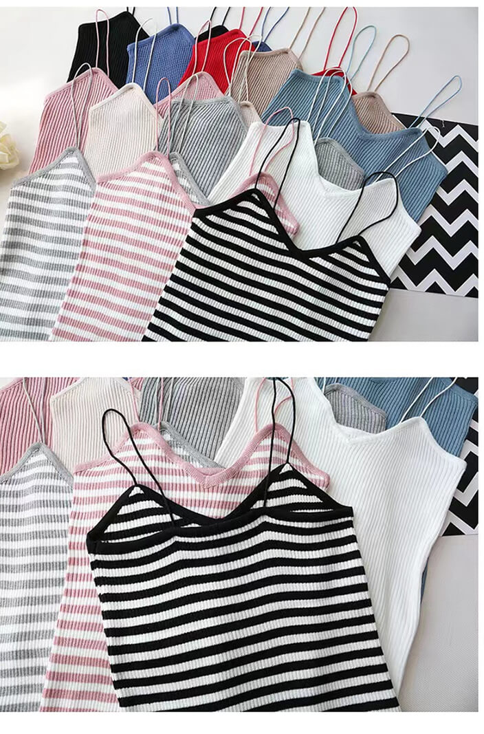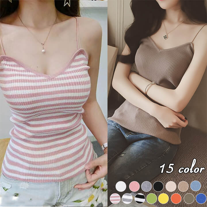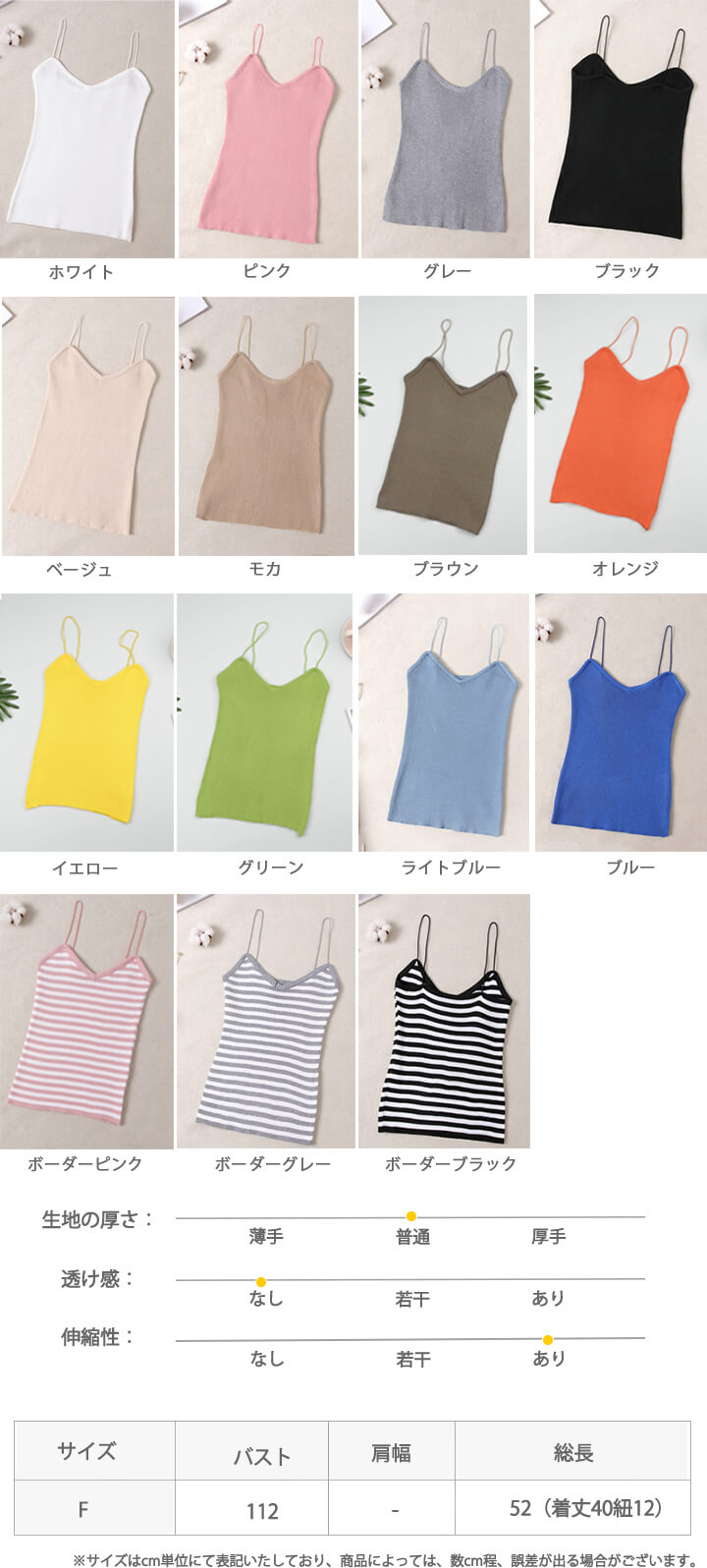 2A38 ボーダーニットキャミソール トップス キャミソール 特集 ホワイト ピンク グレー ブラック ベージュ モカ ブラウン オレンジ イエロー グリーン ライトブルー ブルー ボーダーピンク ボーダーグレー ボーダーブラック