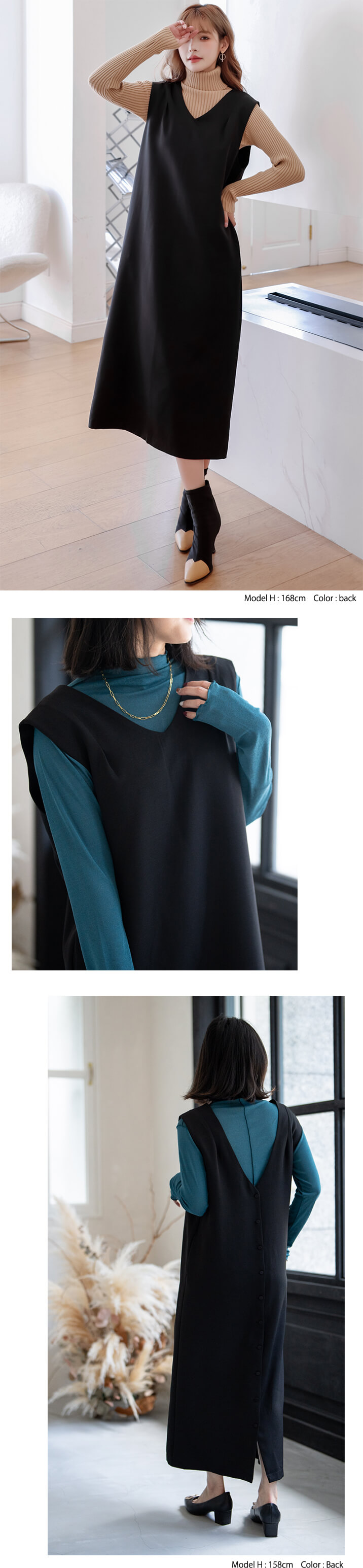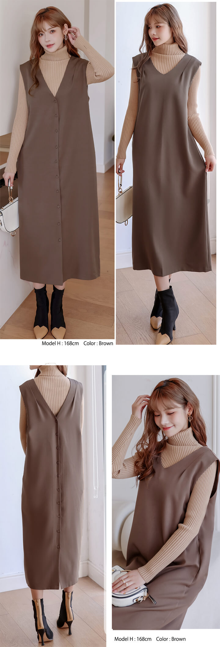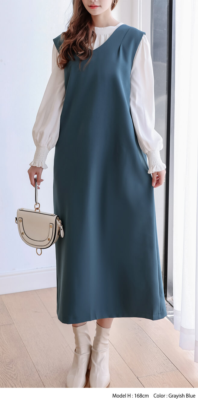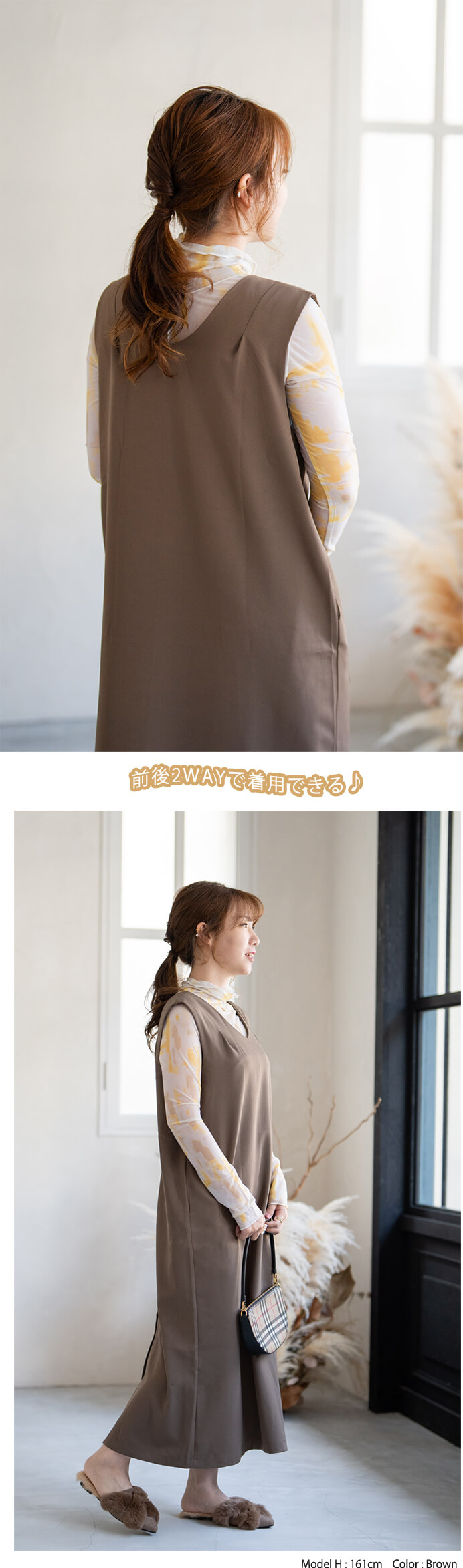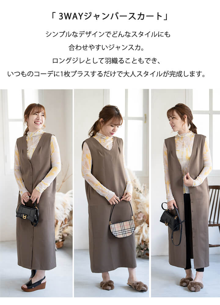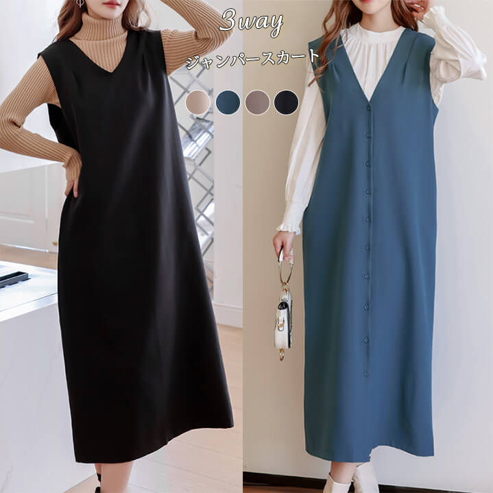 2B29 前後着用可能3way ジャン ワンピース 割引 ベージュ ブラウン グレーシュブルー ブラック