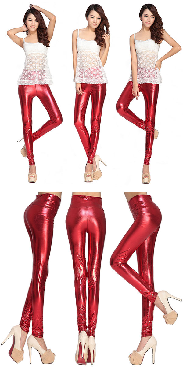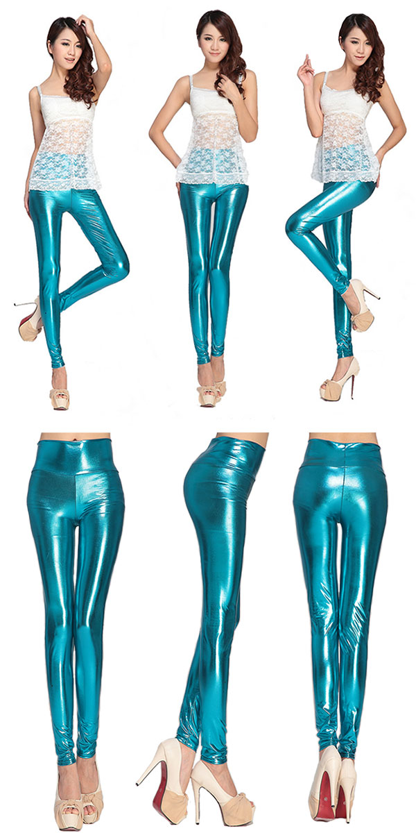 2B16 フェイクレザーレギンス 6カ レディース 靴下 レッグウェア スパッツ レギンス 続々入荷中 ブラック レッド ゴールド シルバー ターコイズ ブルー