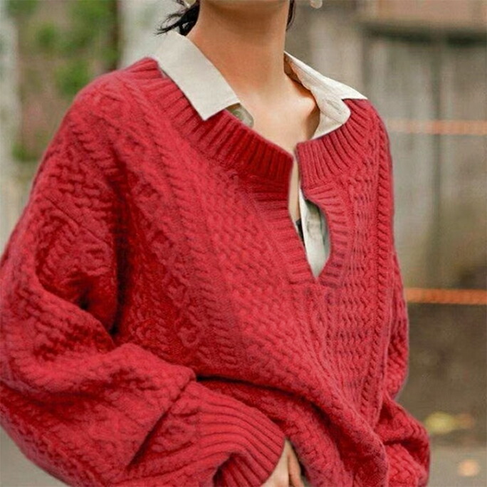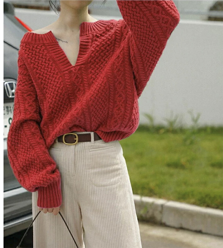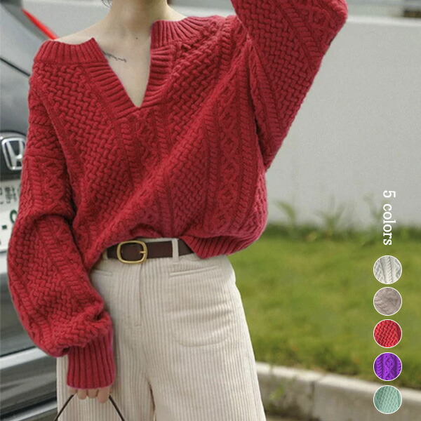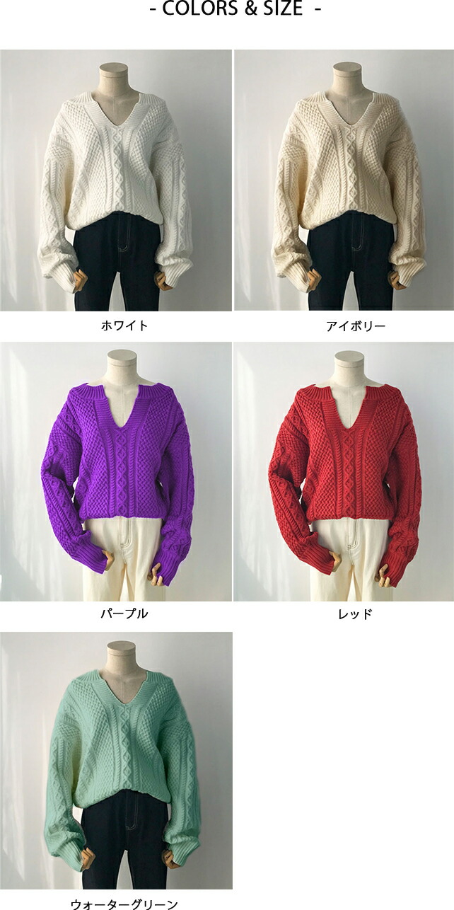 3B20Vネック ケーブルニット セー レディースファッション 豊富な品揃え ホワイト アイボリー パープル レッド ウォーターグリーン
