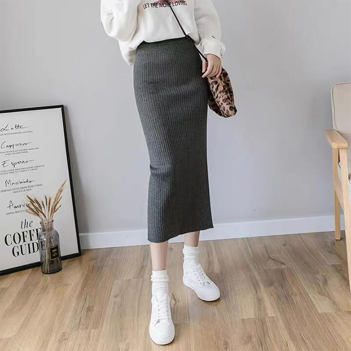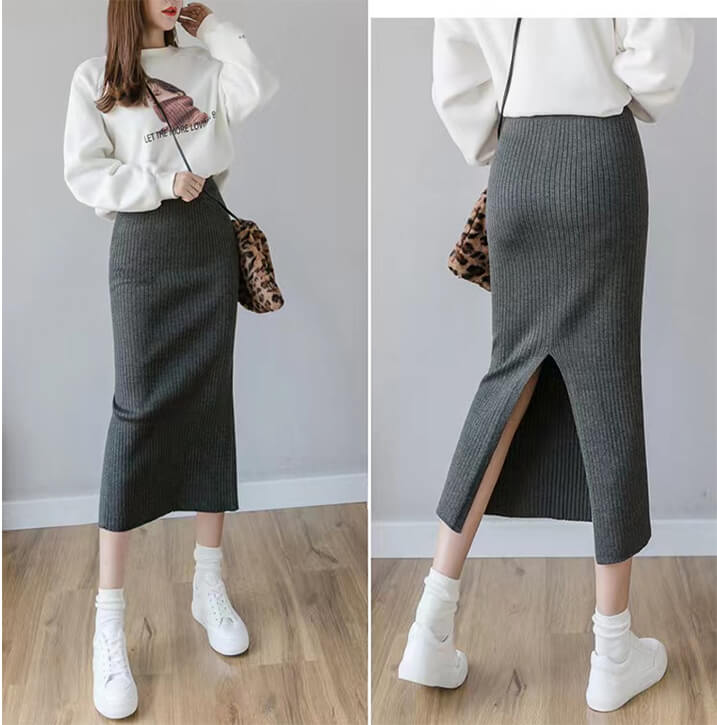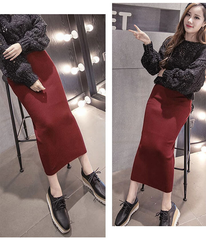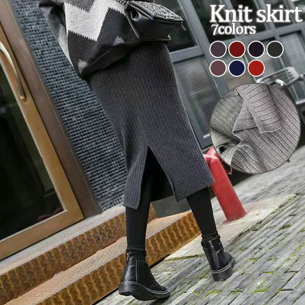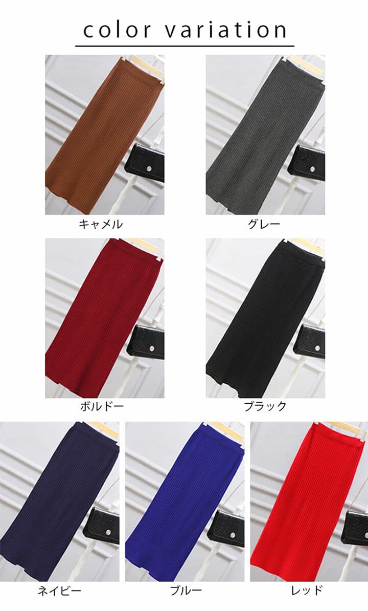 2A10 ニットスカート ミディアム丈 ワンピース 割引 ブラック ネイビー グレー キャメル ブルー ボルドー レッド