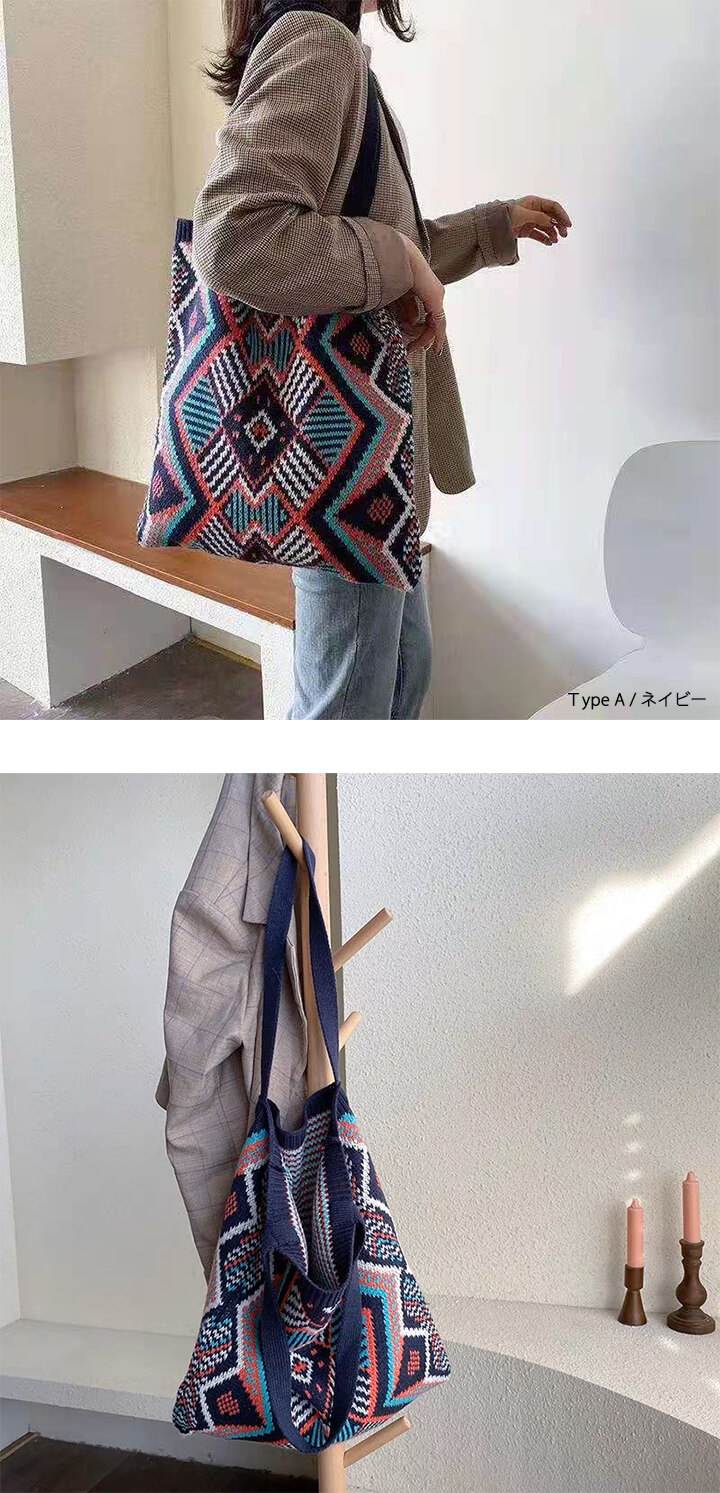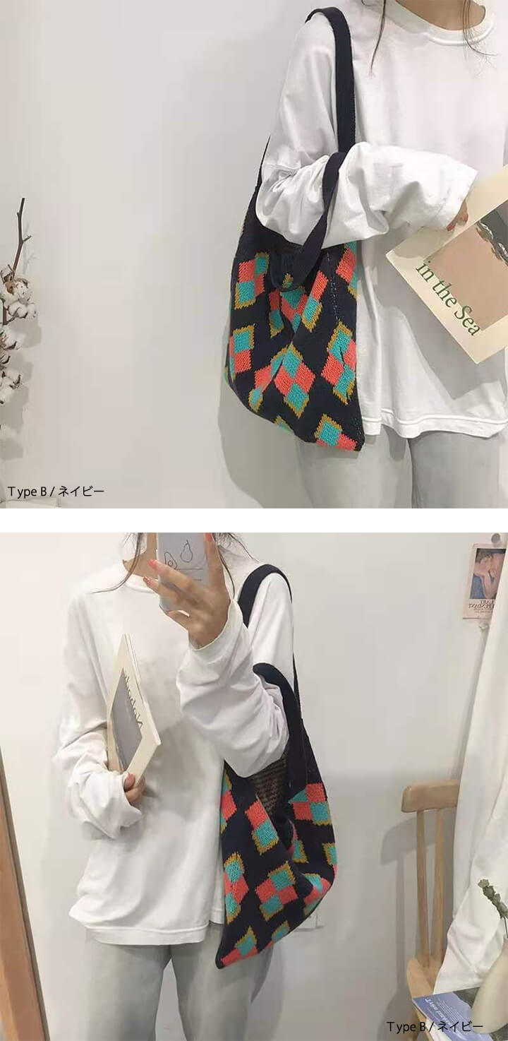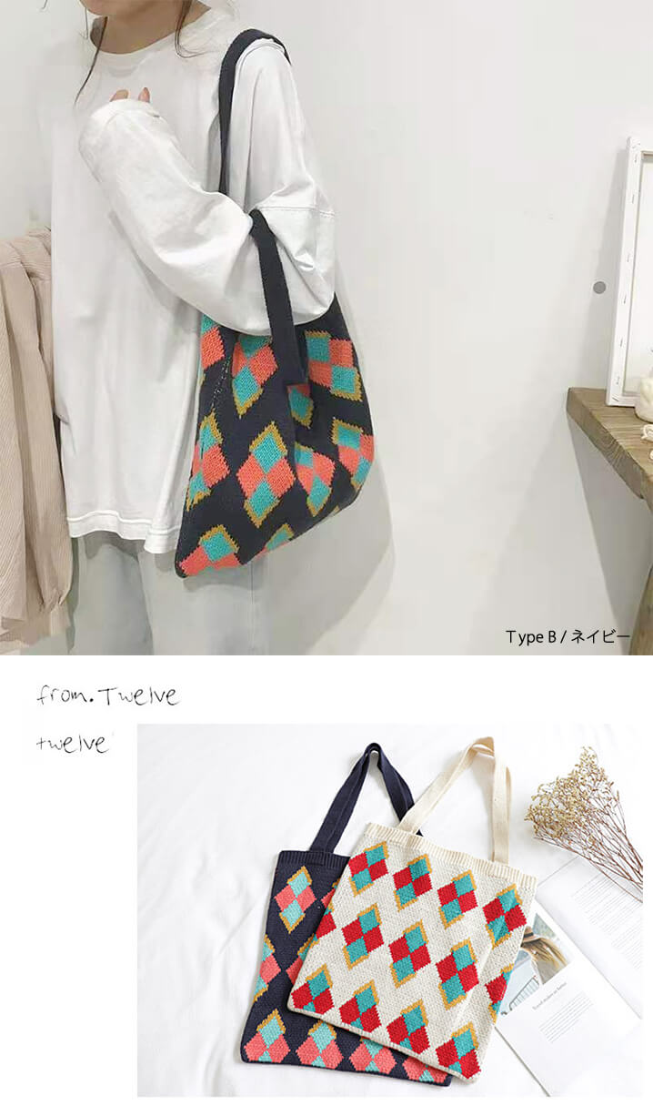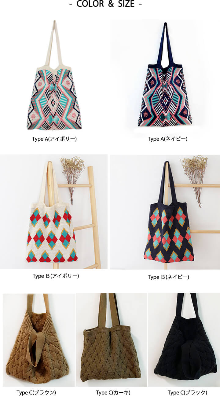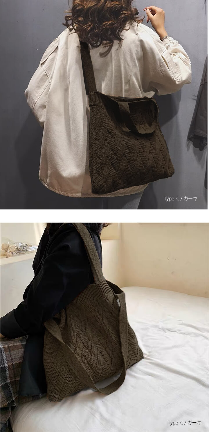1B18 秋冬編みニットバッグ トート バッグ レディースバッグ トートバッグ 続々登場 Type A(アイボリー) Type A(ネイビー) Type B(アイボリー) Type B(ネイビー) Type C(ブラウン) Type C(カーキ) Type C(ブラック)