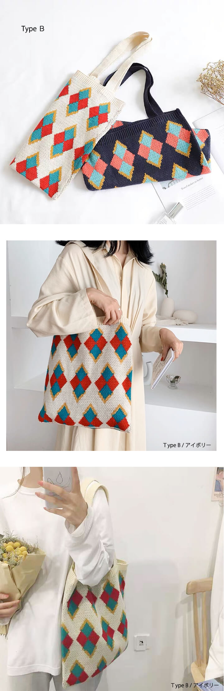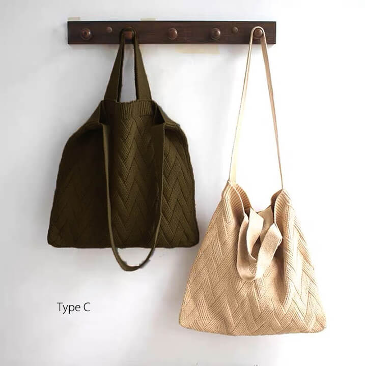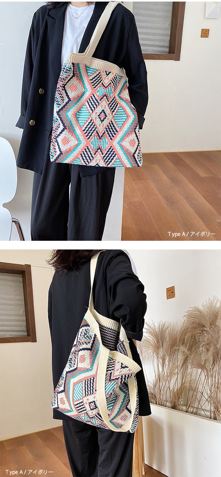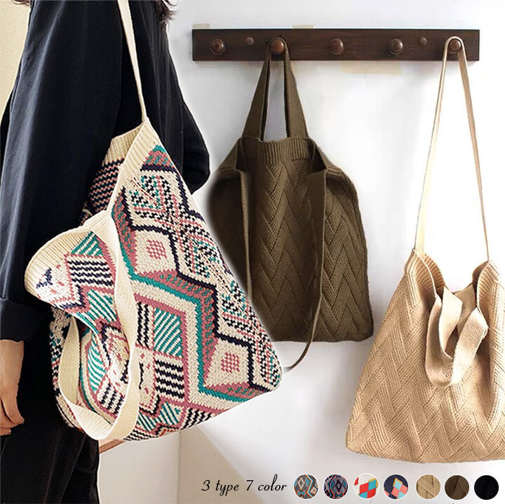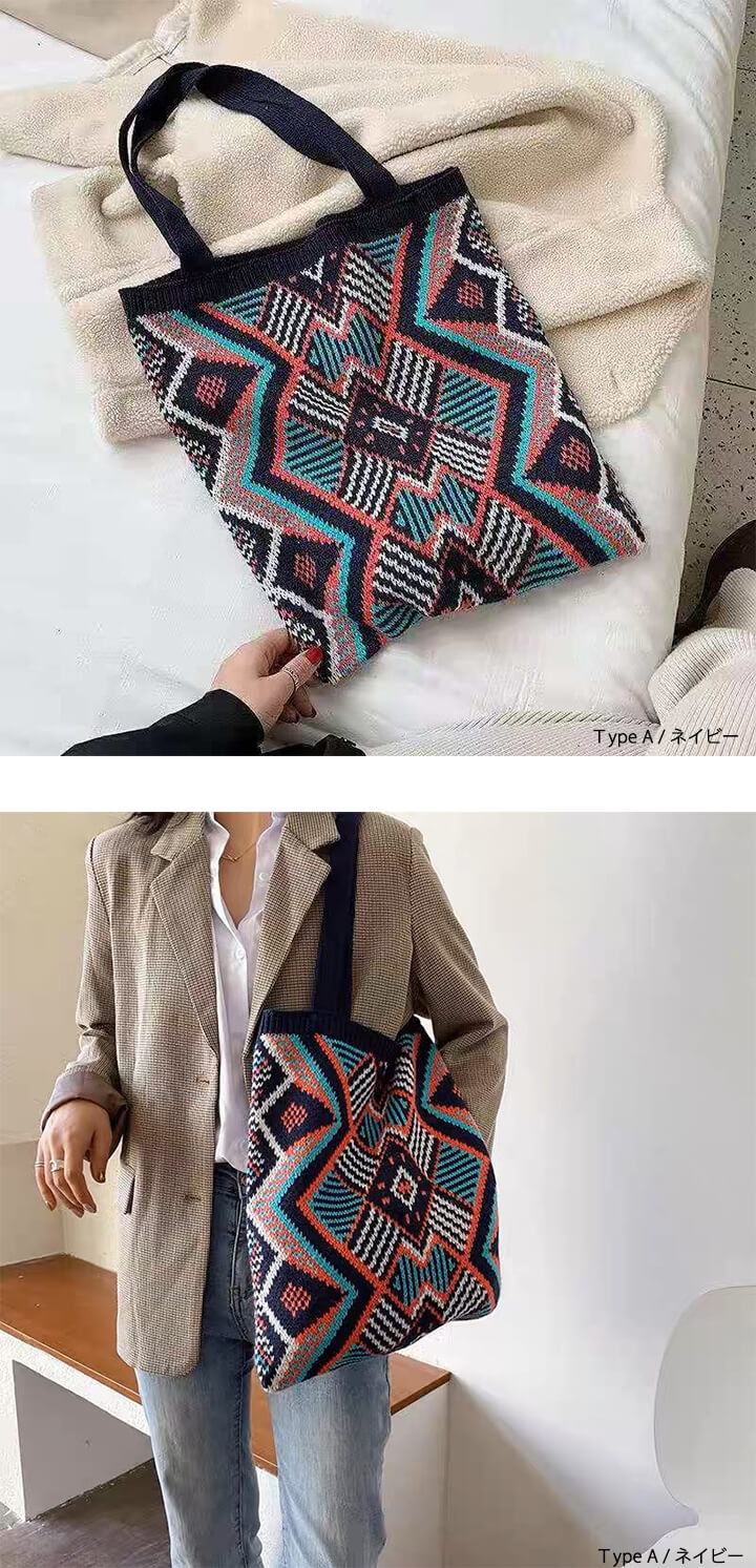 1B18 秋冬編みニットバッグ トート バッグ レディースバッグ トートバッグ 続々登場 Type A(アイボリー) Type A(ネイビー) Type B(アイボリー) Type B(ネイビー) Type C(ブラウン) Type C(カーキ) Type C(ブラック)