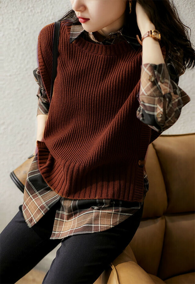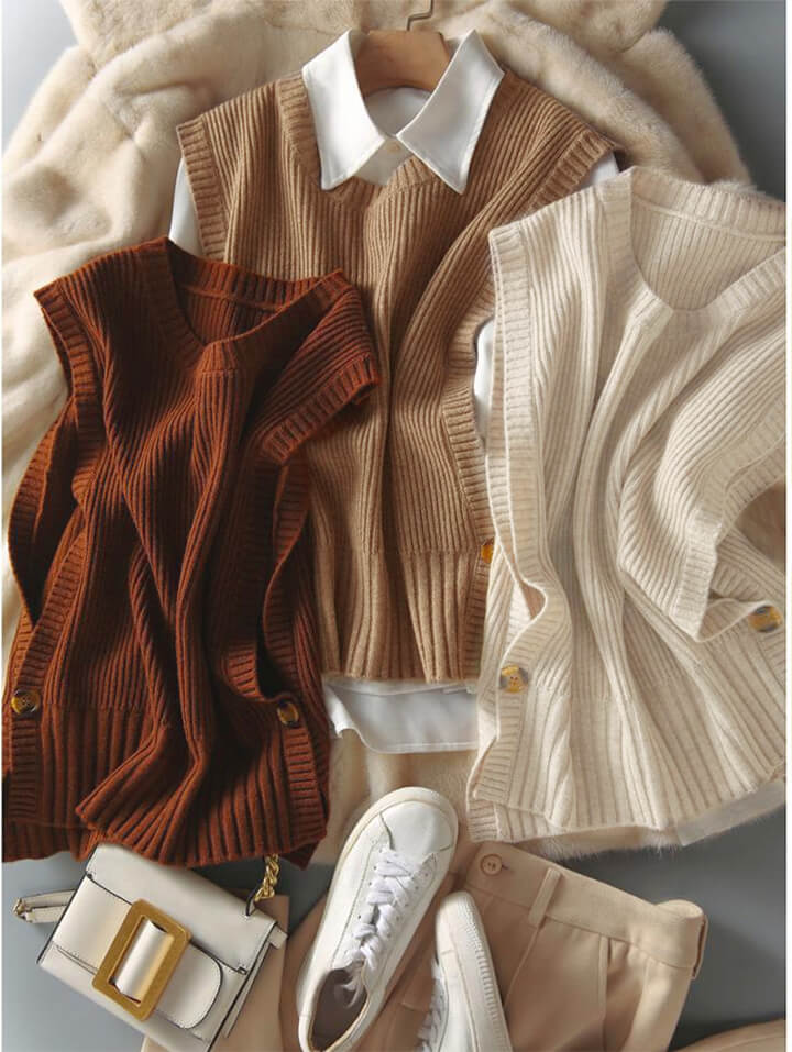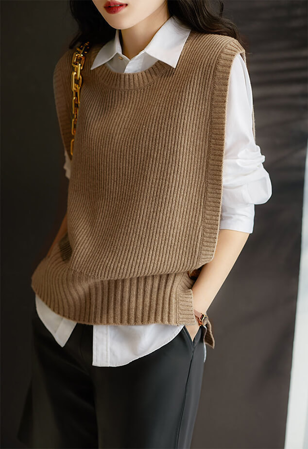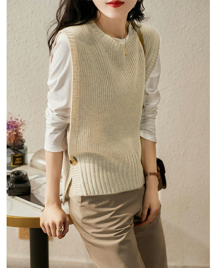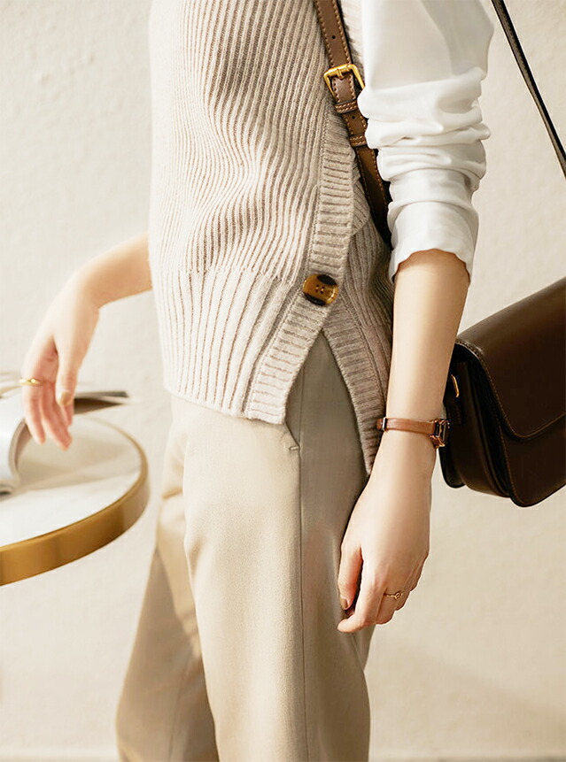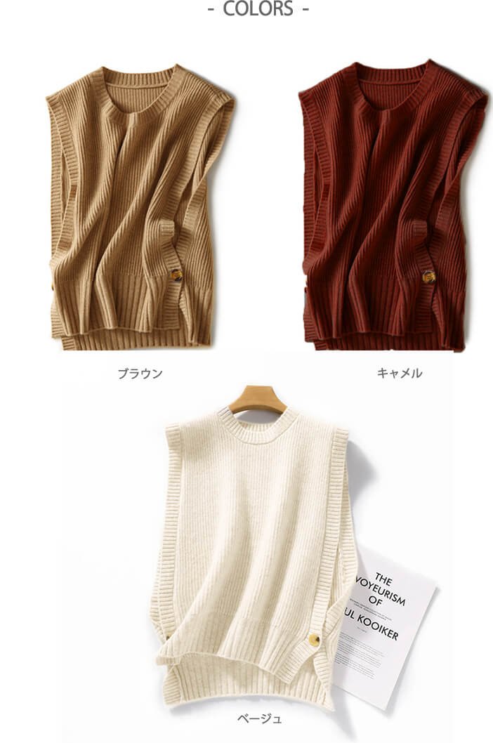 2B33 ニットベスト 両サイド 1ボ レディースファッション 豊富な品揃え ブラウン キャメル ベージュ
