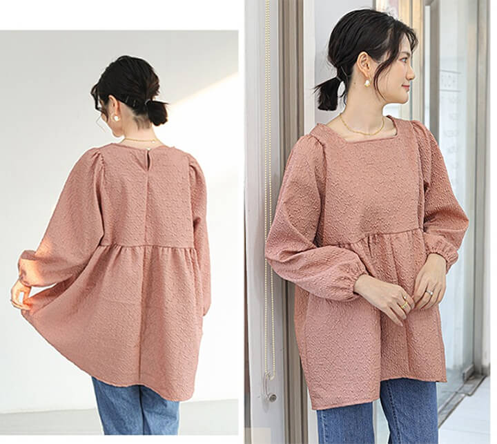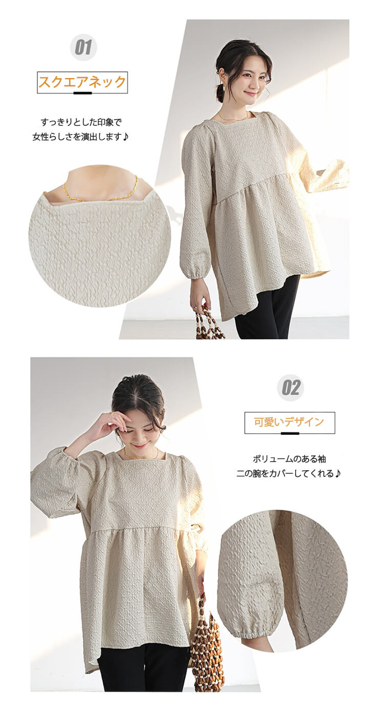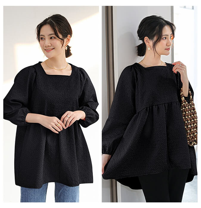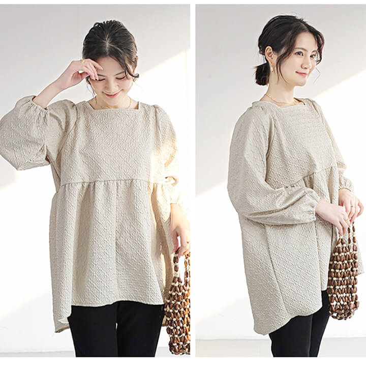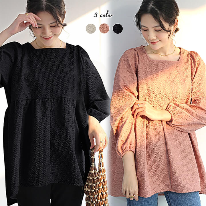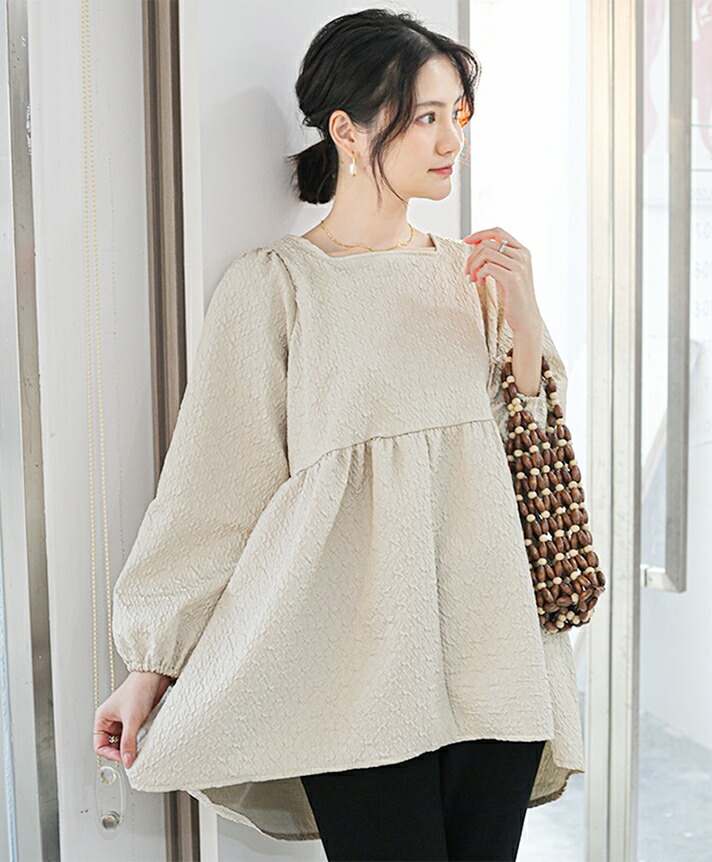 2A33 ペプラムジャガードブラウス レディースファッション 続々登場 ベージュ ピンク ブラック