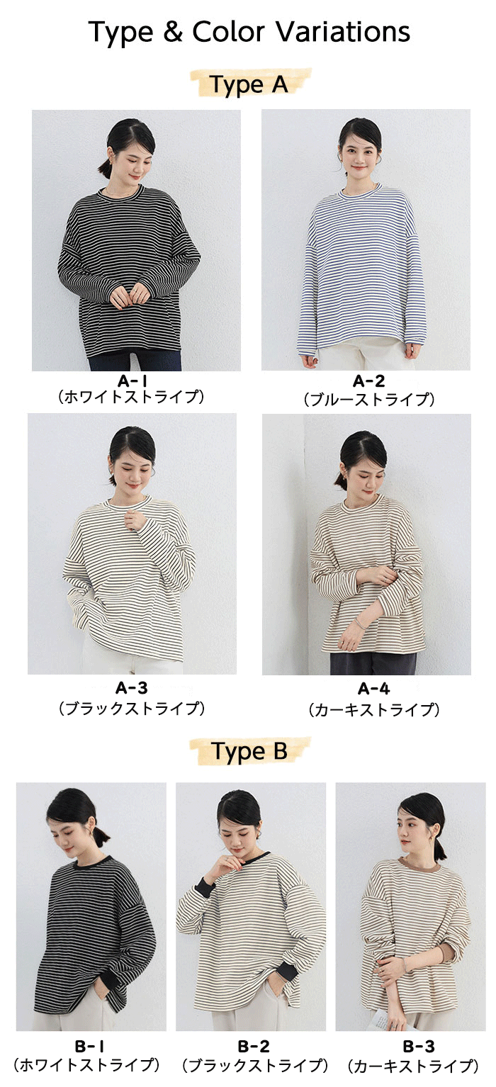 2B16-U 3Type ボーダーロン トップス Tシャツ カットソー 人気 ワンサイズ Mサイズ Lサイズ A-1(ホワイトストライプ A-2(ブルーストライプ A-3(ブラックストライプ A-4(カーキストライプ B-1(ホワイトストライプ B-2(ブラックストライプ B-3(カーキストライプ C-1(ブラックストライプ C-2(ホワイトストライプ C-3(無地ホワイト C-4(無地グレー C-5(無地ベージュ C-6(ブラウン C-7(ブラック