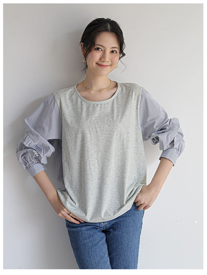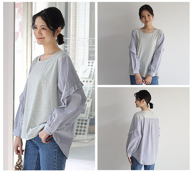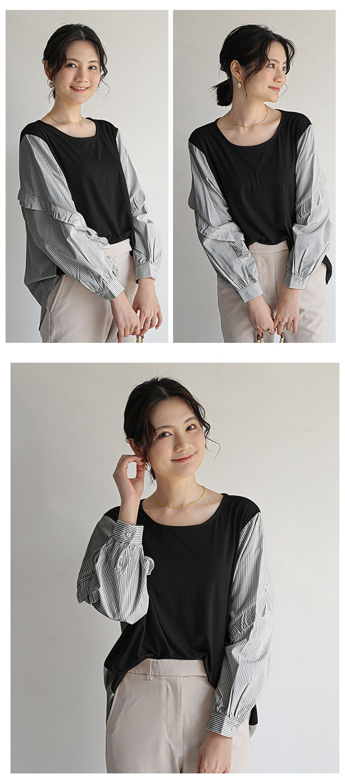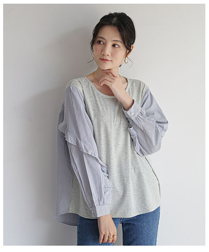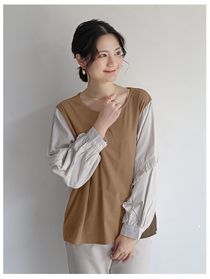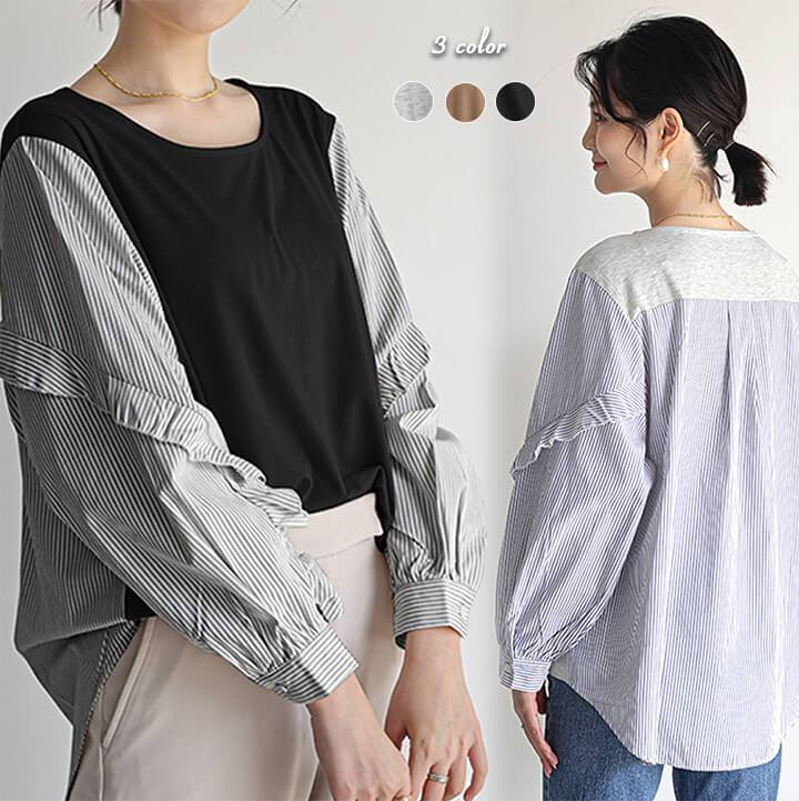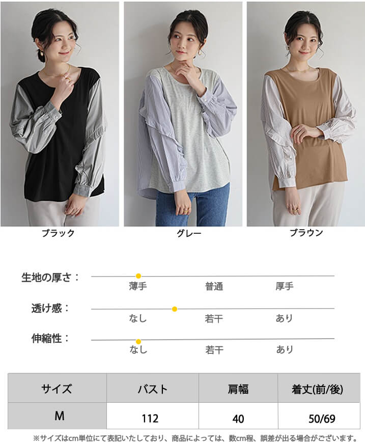2B32 異素材切り替えブラウス フリ レディースファッション 42%Off グレー ブラウン ブラック