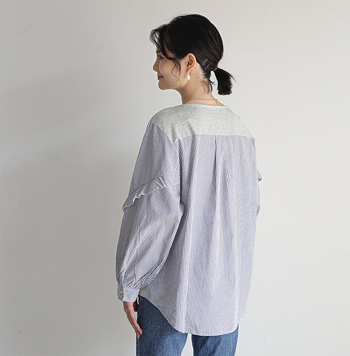 シアースリーブ ドッキングシャツ ボウタイシャツブラウス