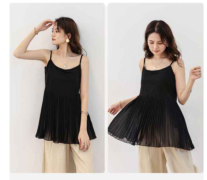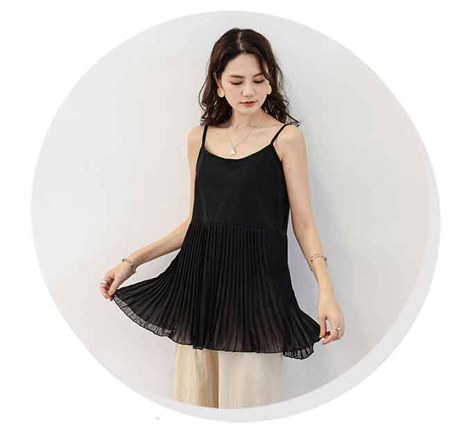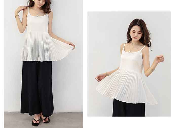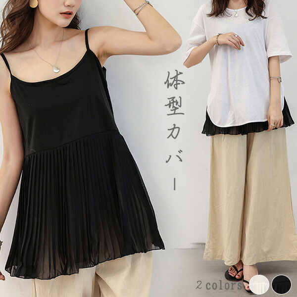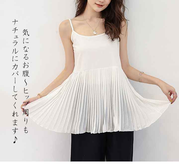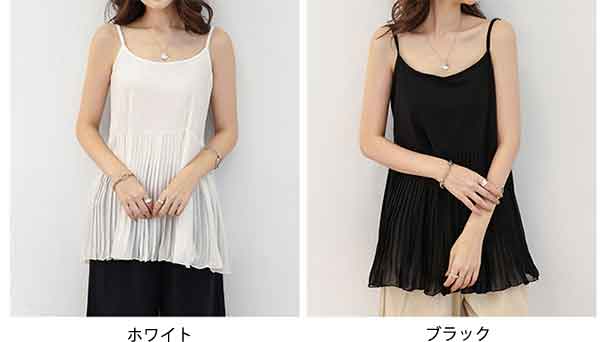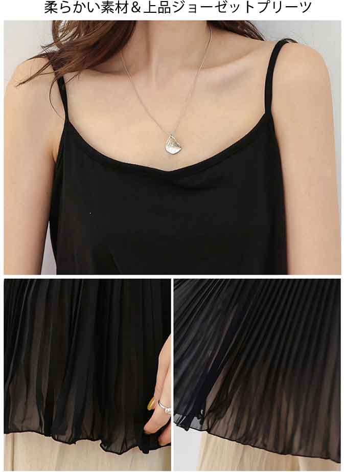 2B36 プリーツキャミソール つけ裾 トップス キャミソール 人気 ホワイト ブラック