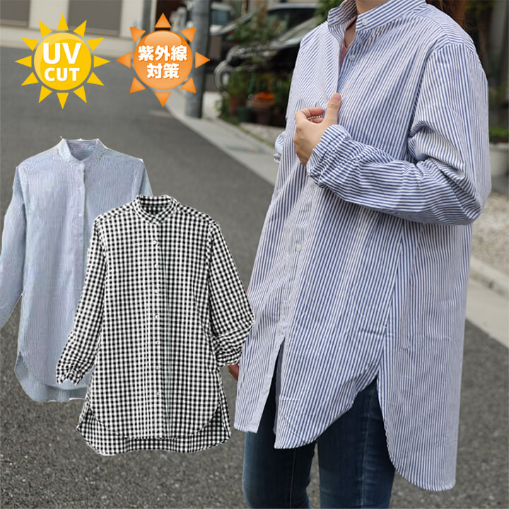 2A32 ロングシャツ ギンガムチェッ トップス カーディガン ボレロ 続々入荷中 M L ストライプ チェック