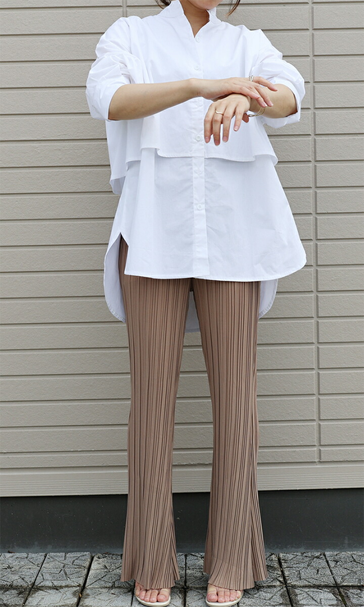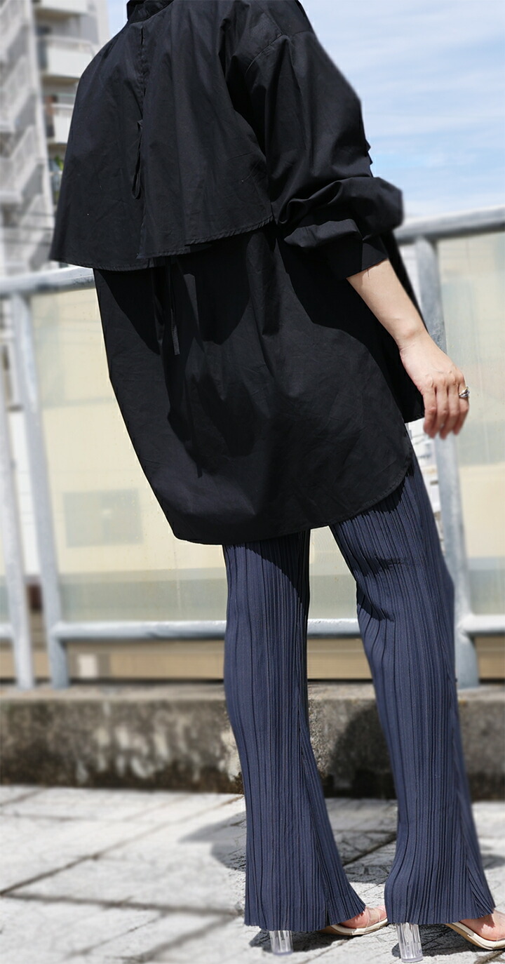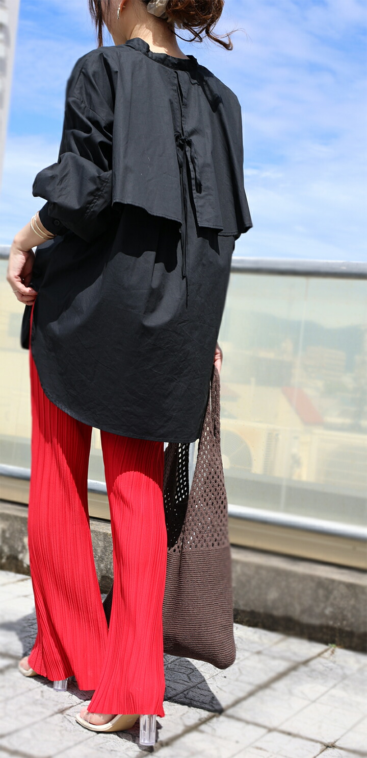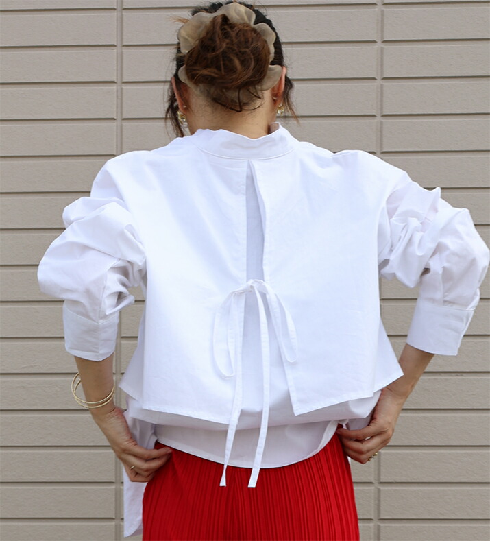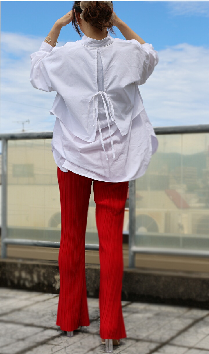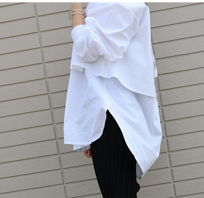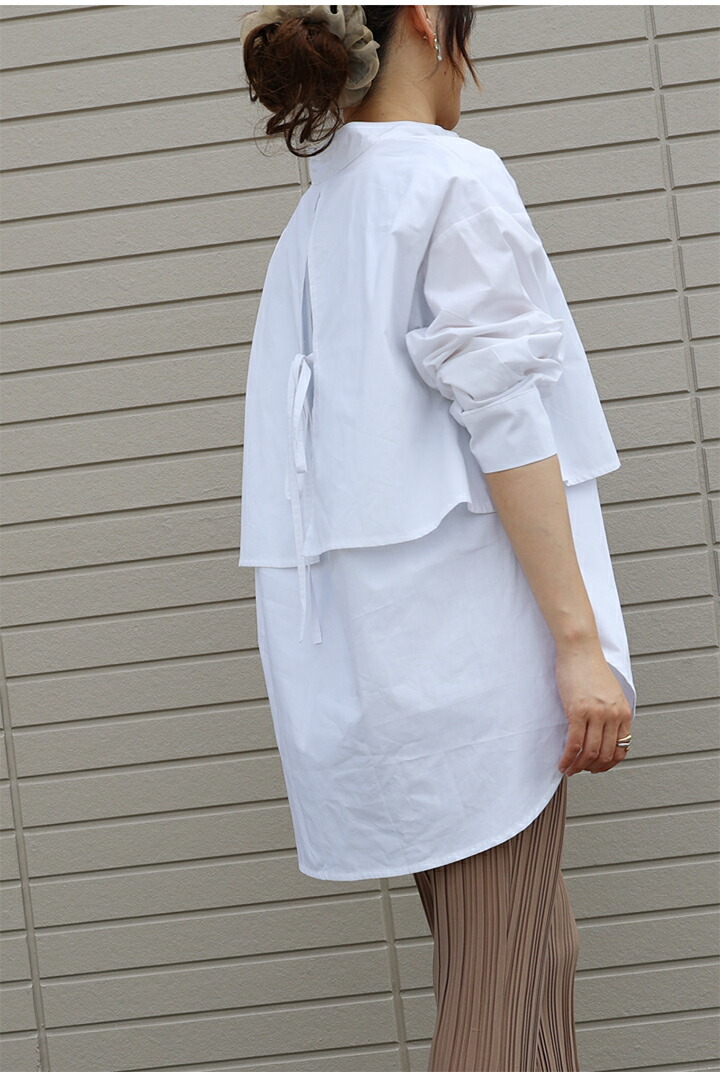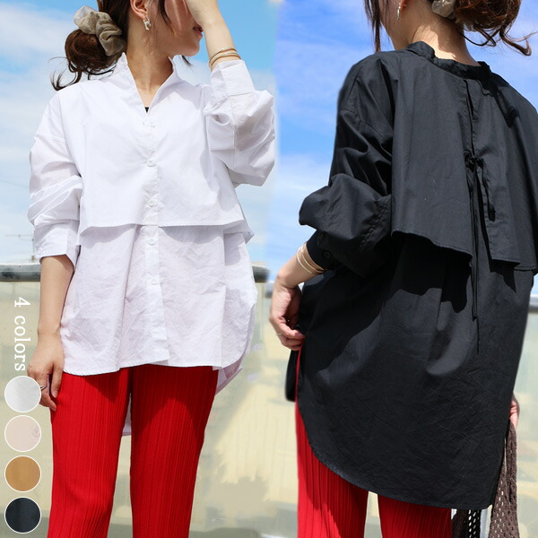 2A19 後ろリボンロングシャツ トッ レディースファッション 42%Off ホワイト ブラック ベージュ ブラウン