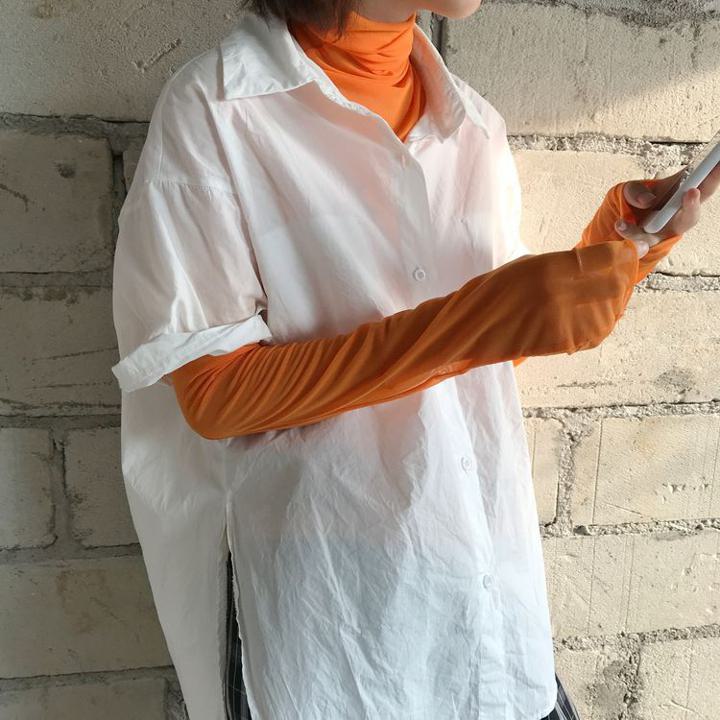 シアースリーブ ドッキングシャツ ボウタイシャツブラウス