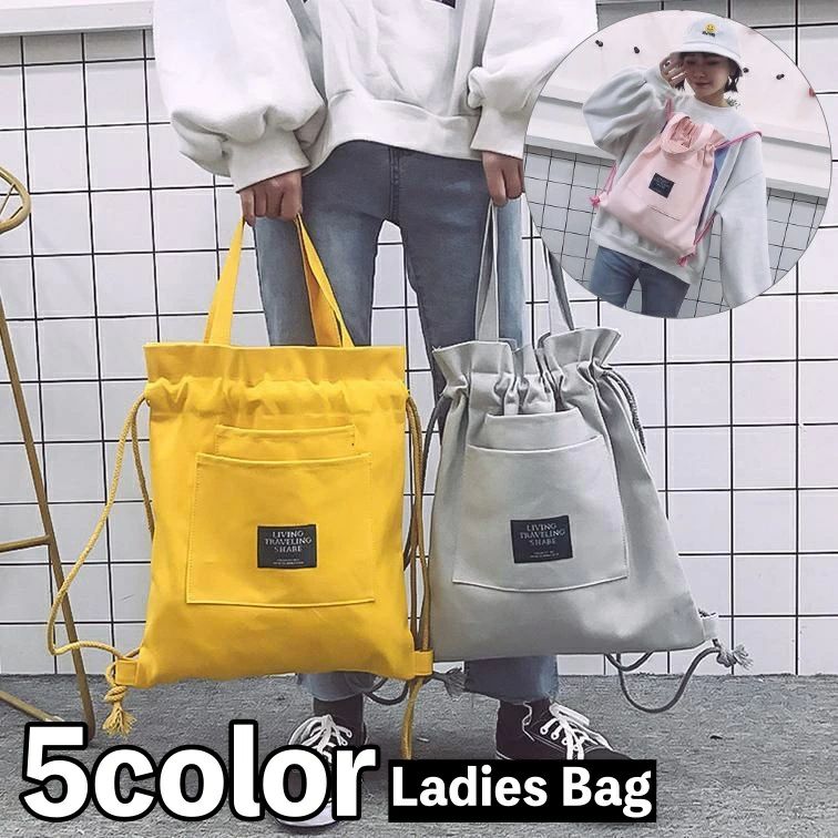 ロゴ ポケット 手提げ リュックサック バッグ 小物 ブランド雑貨 41%Off ホワイト イエロー ブラック グレー ピンク