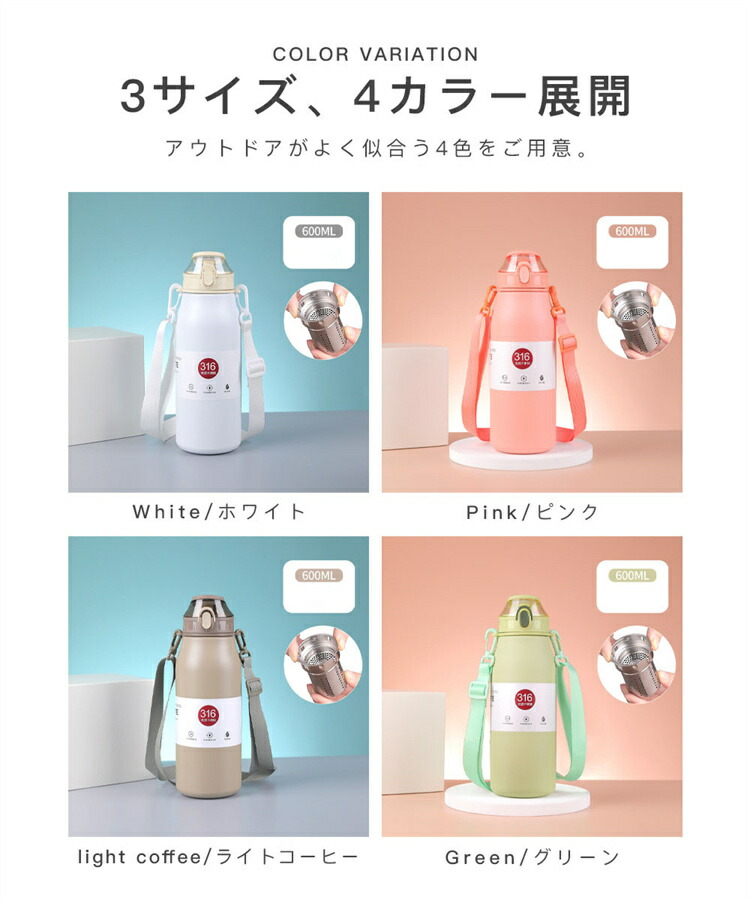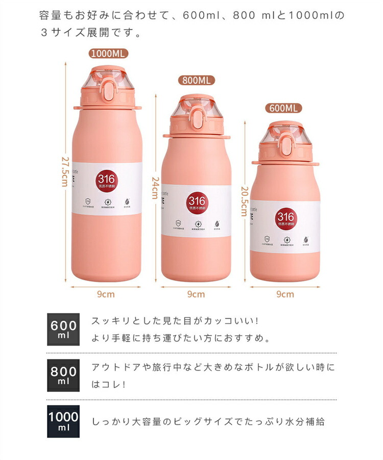 水筒 600mL~1000mL 魔法瓶 弁当箱 水筒 子供用弁当箱 水筒 水筒 コップ 水筒 豊富 ブラック ピンク ライトコーヒー グリーン 600mL 800mL 1000mL