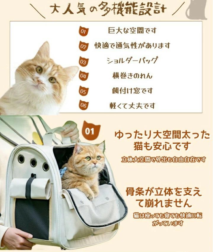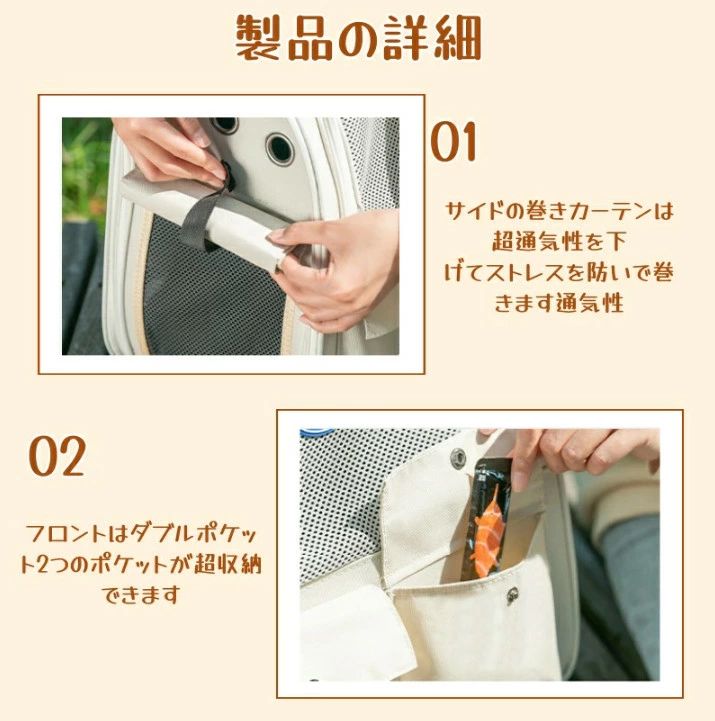 ▼通気性抜群!軽量型。メッシュ窓付きのペットリュック型キャリー。