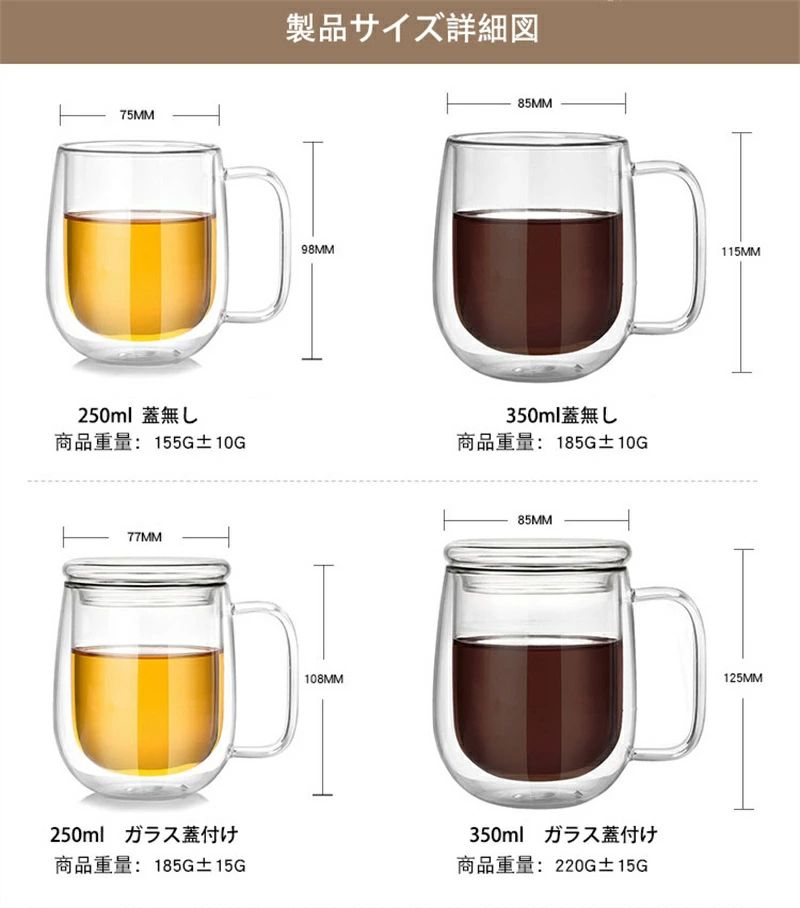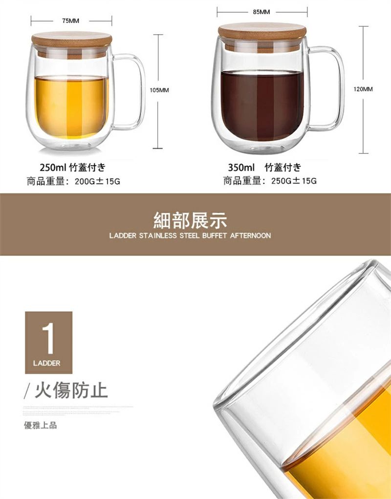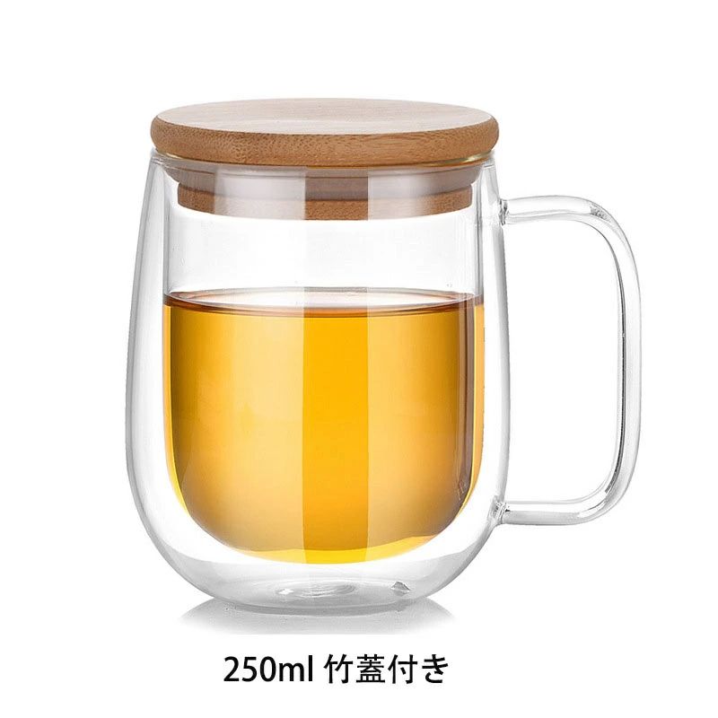 ダブルウォールグラスカップ 250ml コーヒー お茶用品 その他 新作 竹蓋付き ガラス蓋付き 蓋無し 250ml 350ml