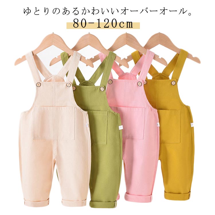 キッズ 無地 オールインワン オーバー キッズ オーバーオール 割引 グリーン ベージュ ピンク イエロー 80 90 100 110 120
