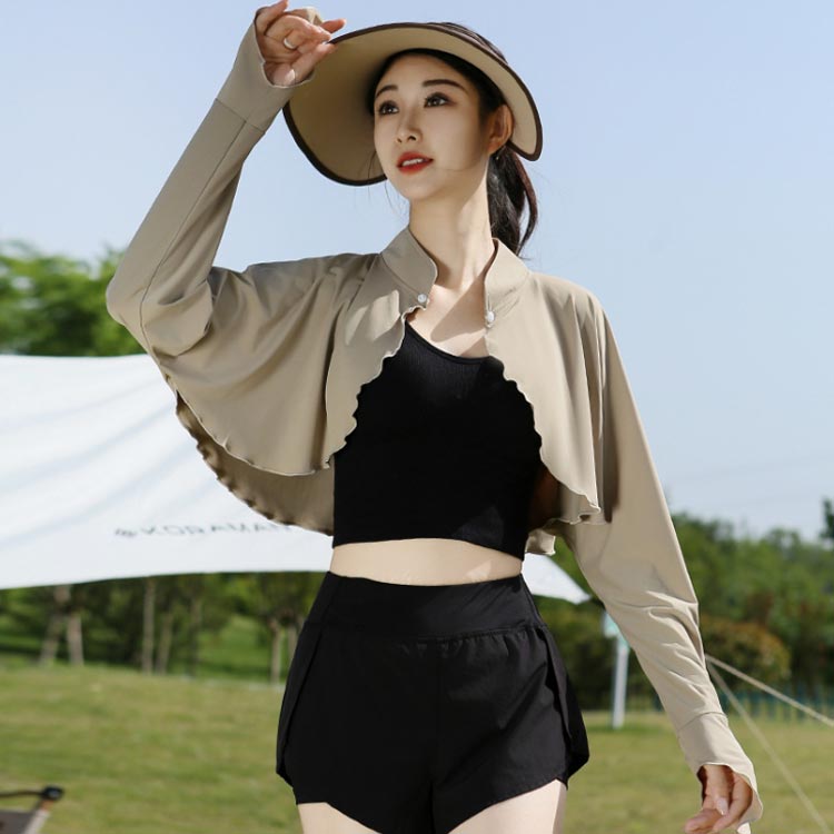 立ち襟 ラッシュガード ケープ 裾フリ トップス カーディガン ボレロ 新作 ホワイト ライトグレー グレー グリーン ダークグレー ブラック イエロー ピンク キャメル
