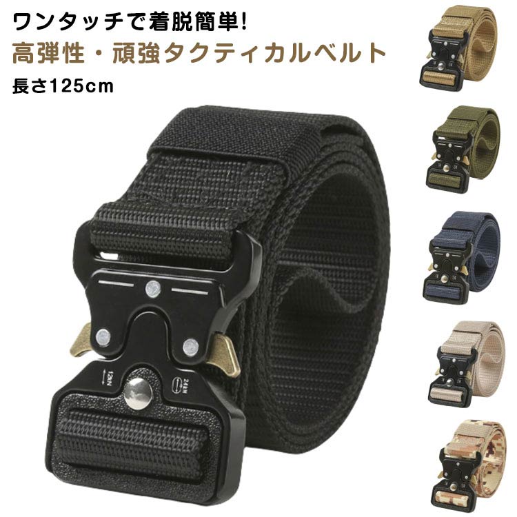 ワンタッチで着脱簡単! 高弾性・頑強タクティカルベルト 長さ125cm