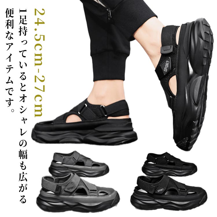 メンズ スポサン スニーカーサンダル メンズ靴 サンダル スポーツサンダル 人気 ブラック グレー 39(24.5cm) 40(25cm) 41(25.5cm) 42(26cm) 43(26.5cm) 44(27cm)