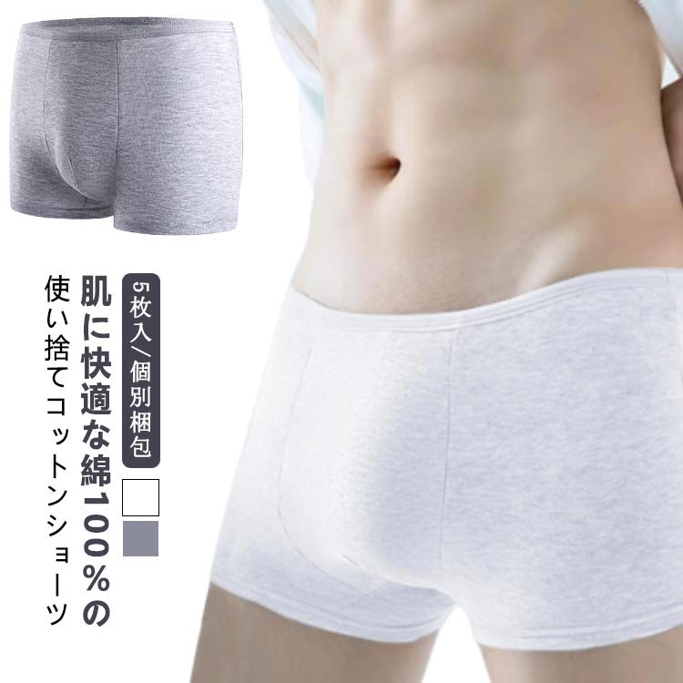 スポーツ 100 個別包装 パンツ 綿 メンズ インナー 下着 ボクサーパンツ 通販 グレー5枚入 ホワイト5枚入 M L XL 2XL 3XL 4XL