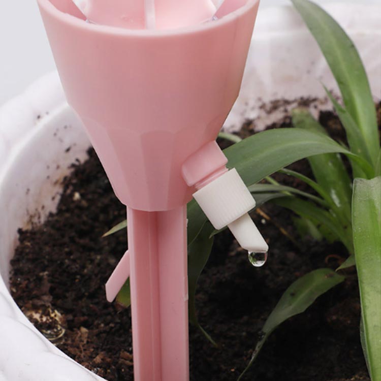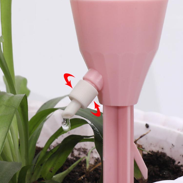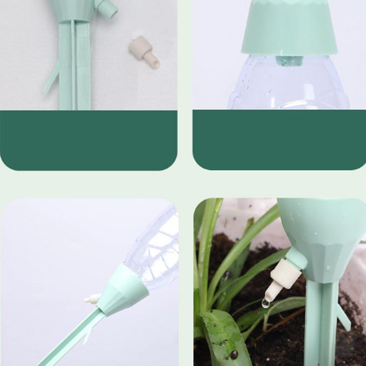 ペットボトルまたはガラスボトルを接続し、プランターに給水杭を挿入してコントロールバルブをオンにするだけで簡単に取り付けられます。必要に応じて流量も調整可能です。